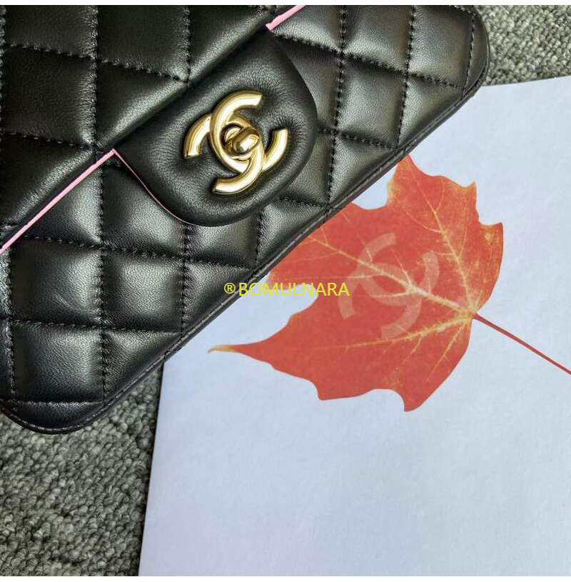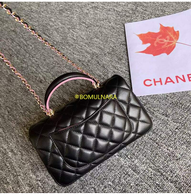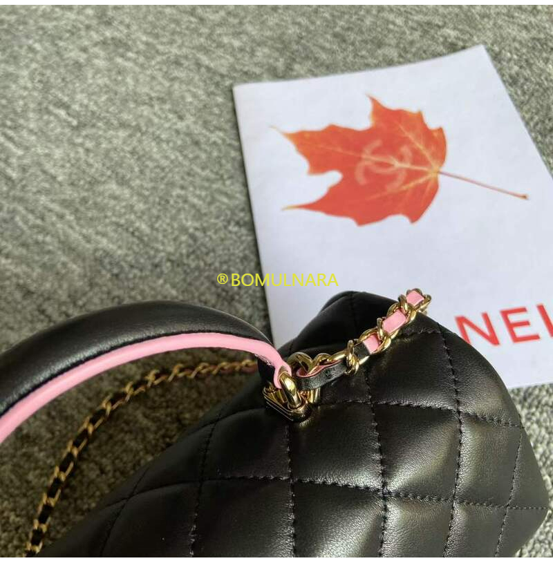 [스페셜오더]CHANEL-AS2431 샤넬 22S 블랙 램스킨 골드 핸들 장식 플랩 미니 탑핸들 백