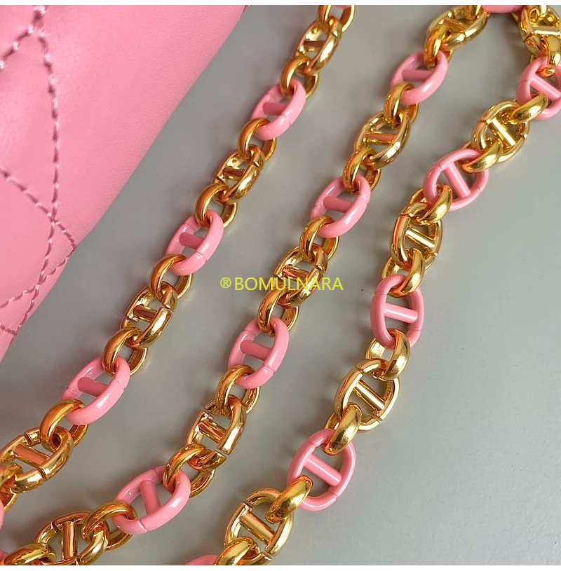 조절 가능한 체인 숄더 스트랩이 가죽 인서트로