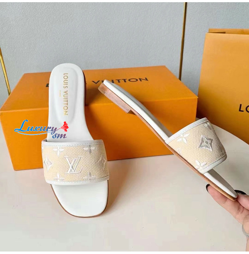 LOUIS VUITTON-1ABTVW 루이비통 화이트 리바이벌 플랫 뮬 여성용