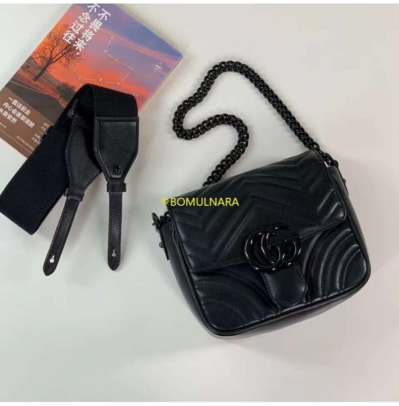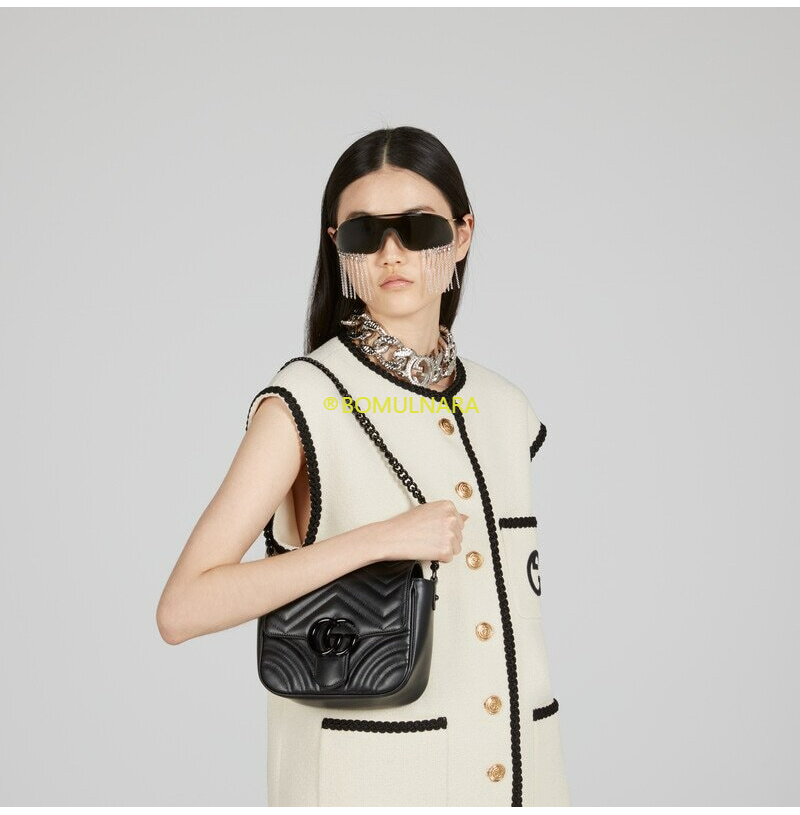 [스페셜오더]GUCCI-739681 1000 구찌 블랙 GG 마몽 마틀라세 쉐브론 숄더백