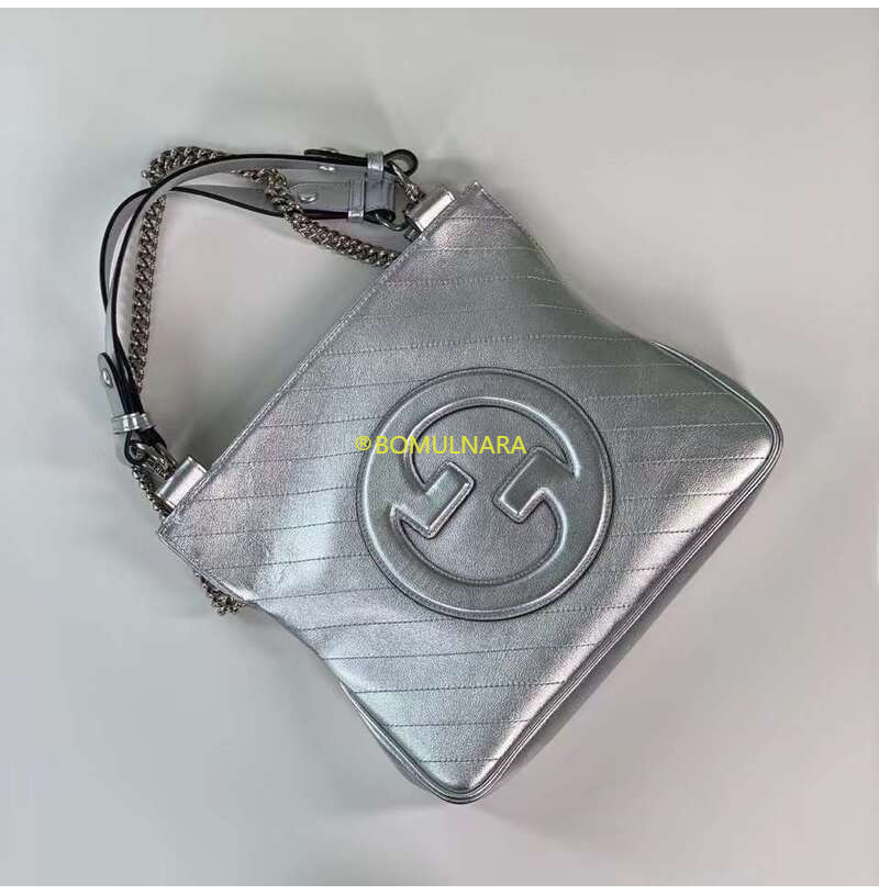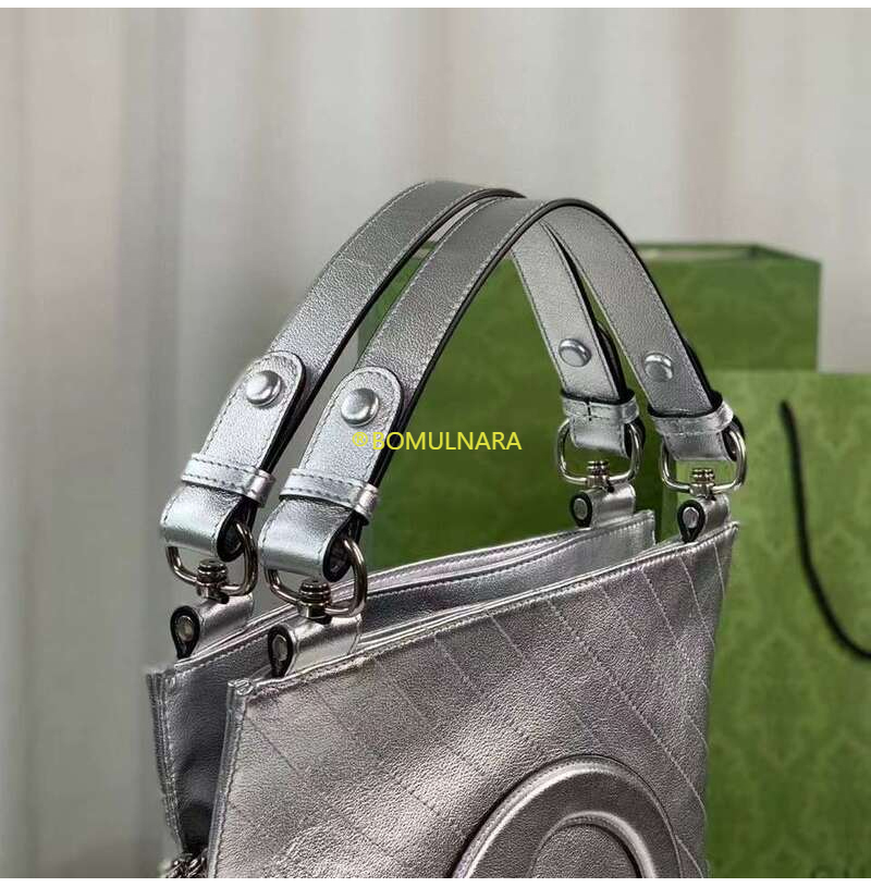 [스페셜오더]GUCCI-751518 8106 구찌 메탈릭 실버 라운드 인터로킹 G 블론디 스몰 토트백