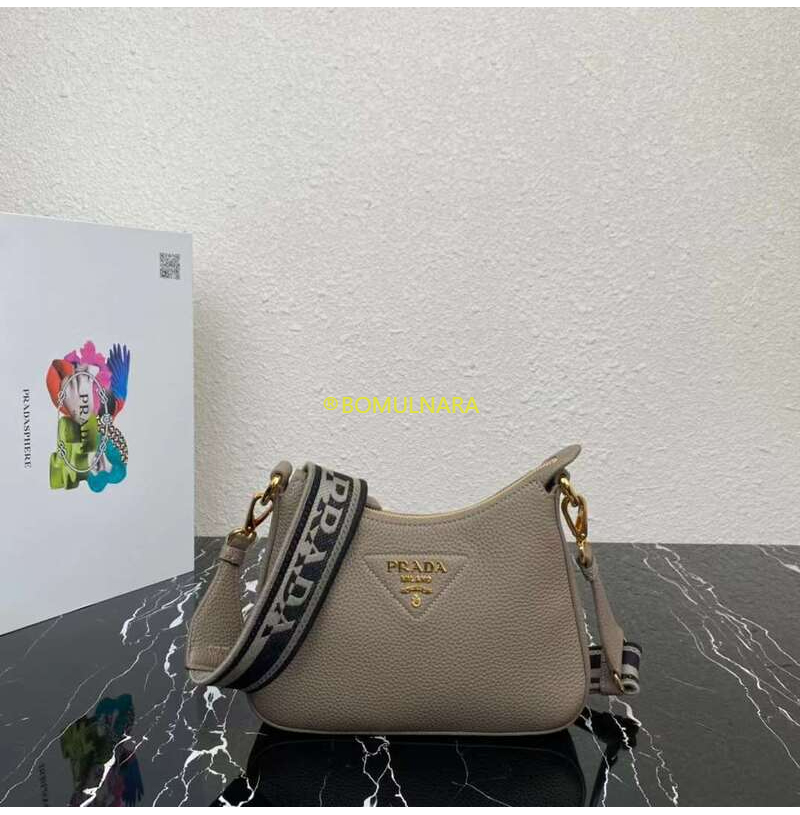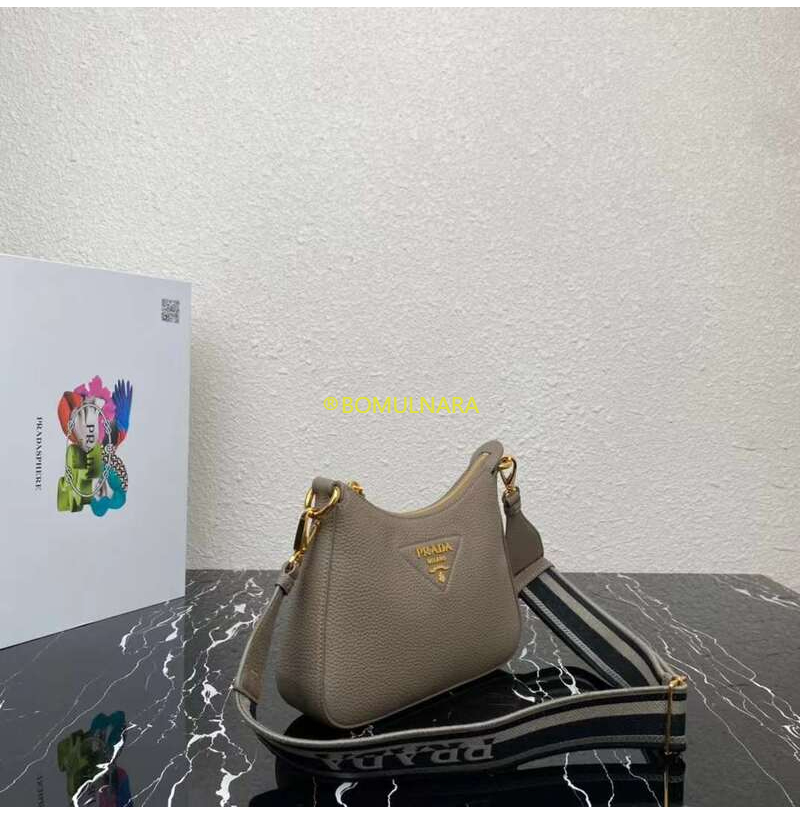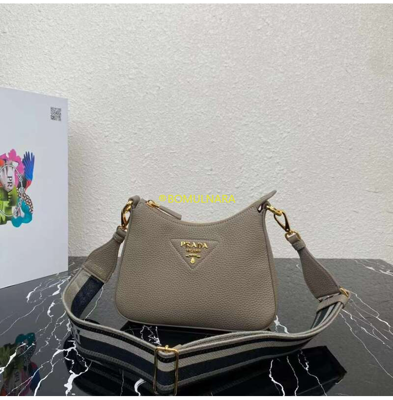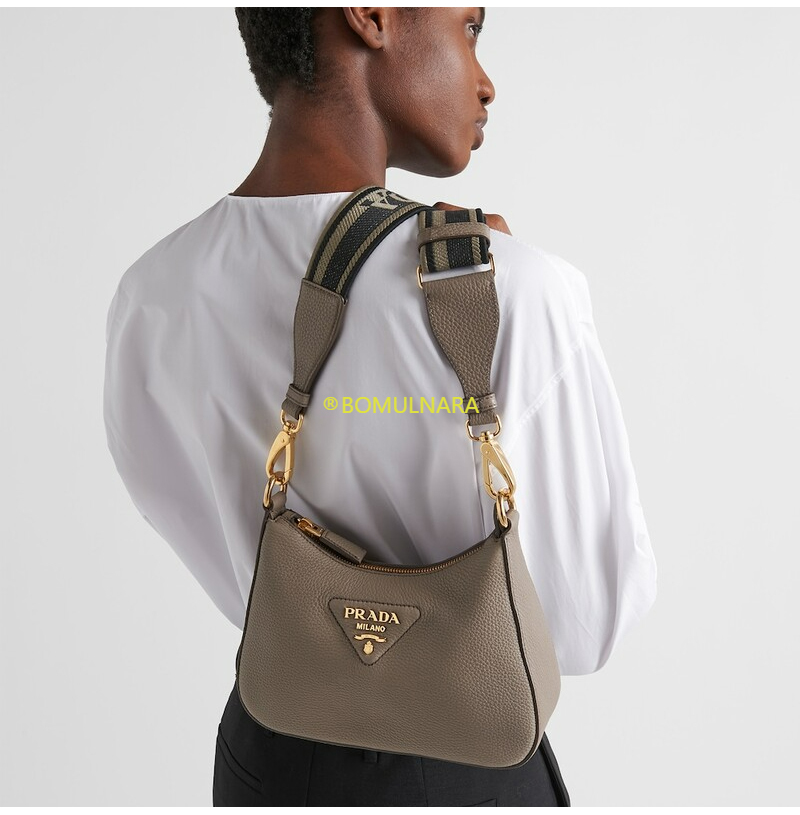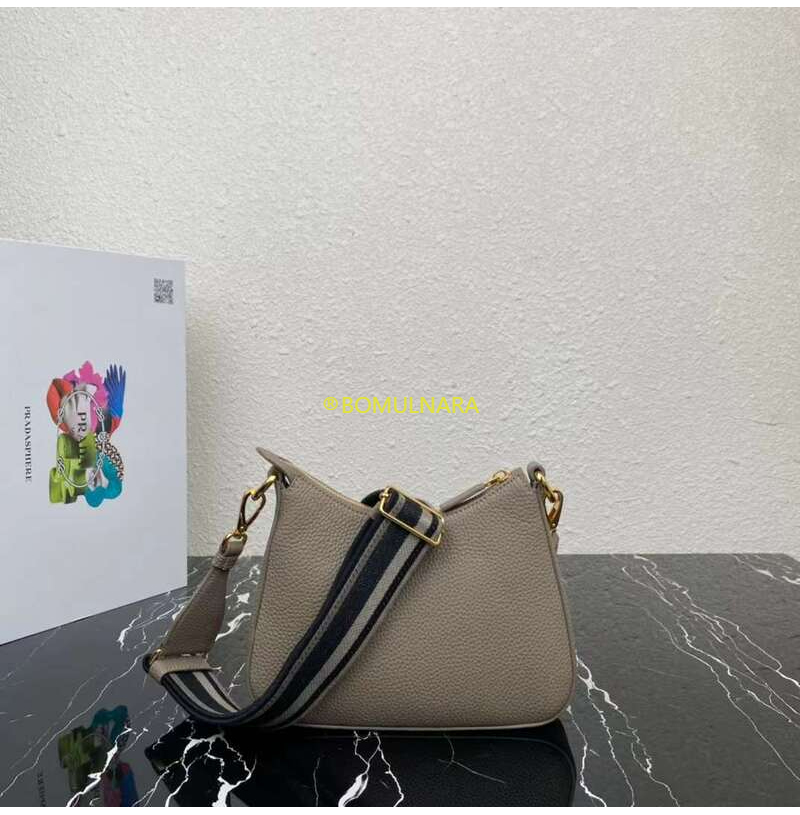 [스페셜오더]PRADA-1BH193 프라다 클레이 그레이 레터링 로고 비텔로 다이노 숄더백 24CM