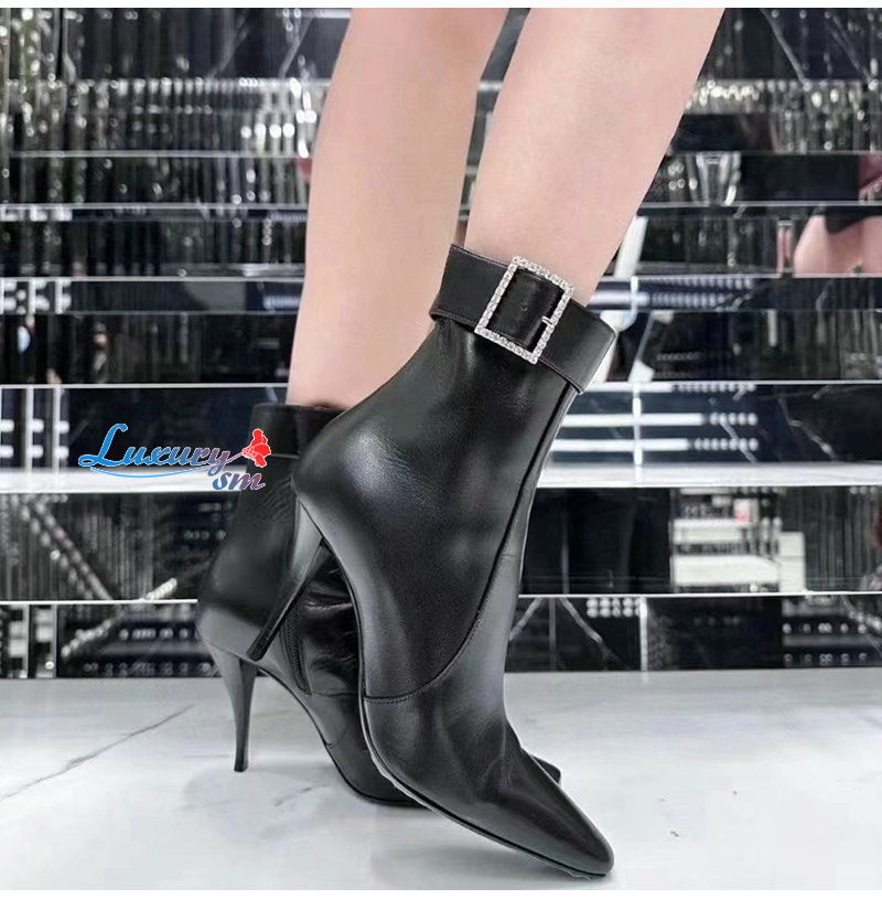 SAINT LAURENT-716726 생 로랑 블랙 가죽 앵클 부츠
