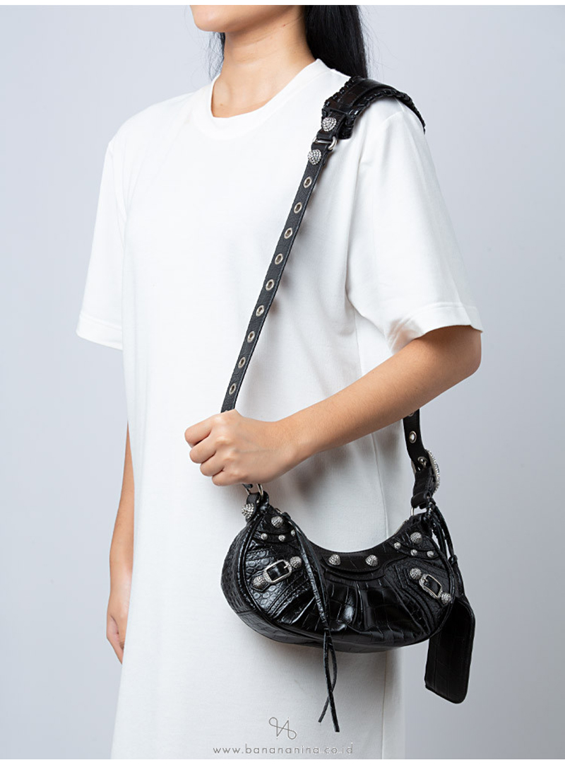 [스페셜오더]BALENCIAGA-671309 발렌시아가 블랙 크로커다일 엠보싱 라인스톤 LE CAGOLE XS 숄더 백