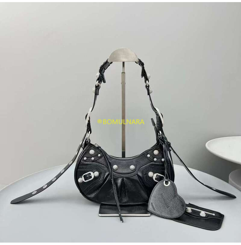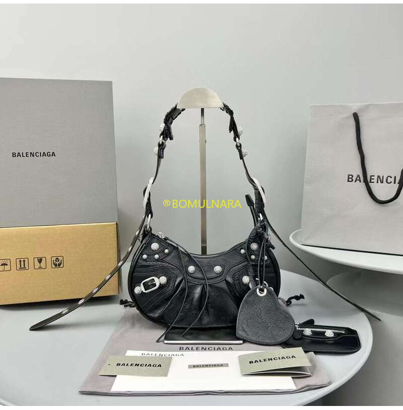 [스페셜오더]BALENCIAGA-671309 발렌시아가 블랙 라인스톤 LE CAGOLE XS 숄더 백