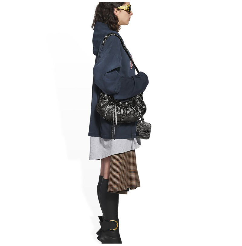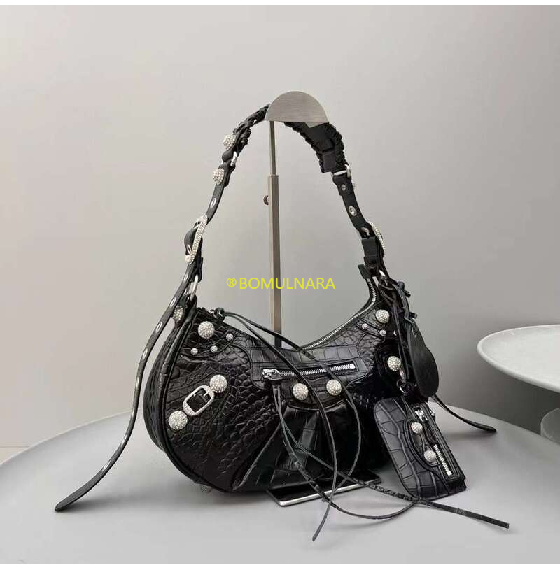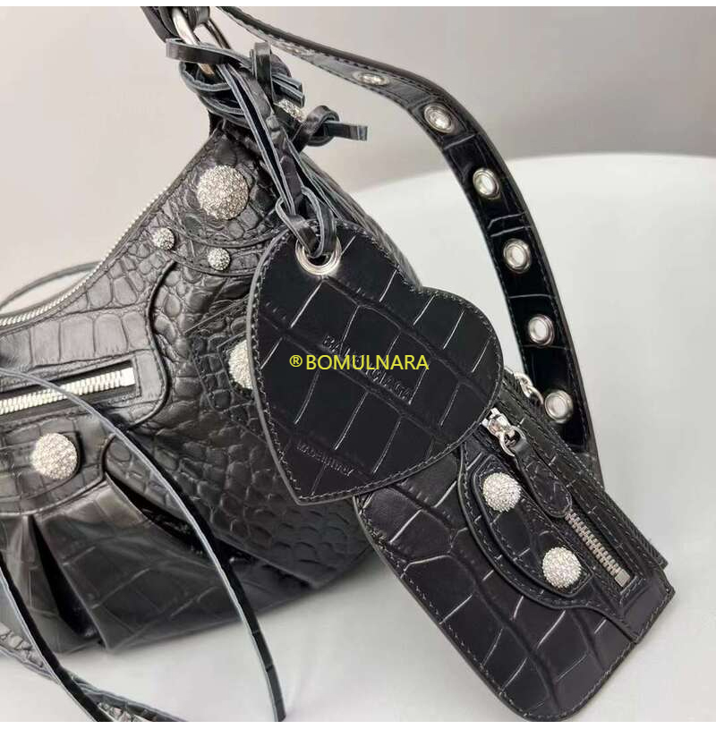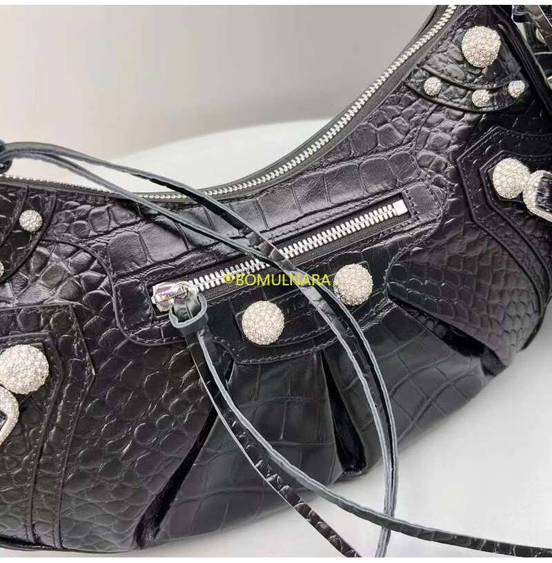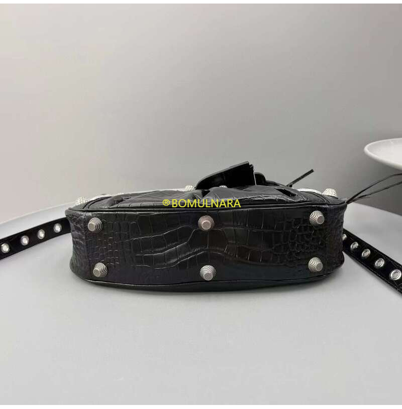 [스페셜오더]BALENCIAGA-671307 발렌시아가 블랙 크로커다일 엠보싱 라인스톤 LE CAGOLE 스몰 숄더백