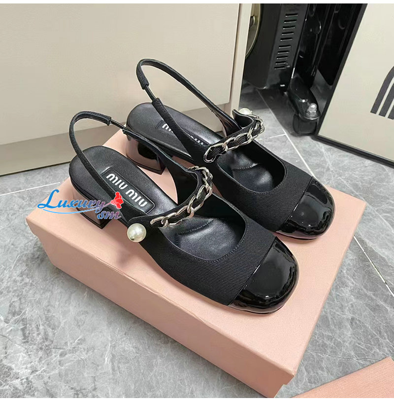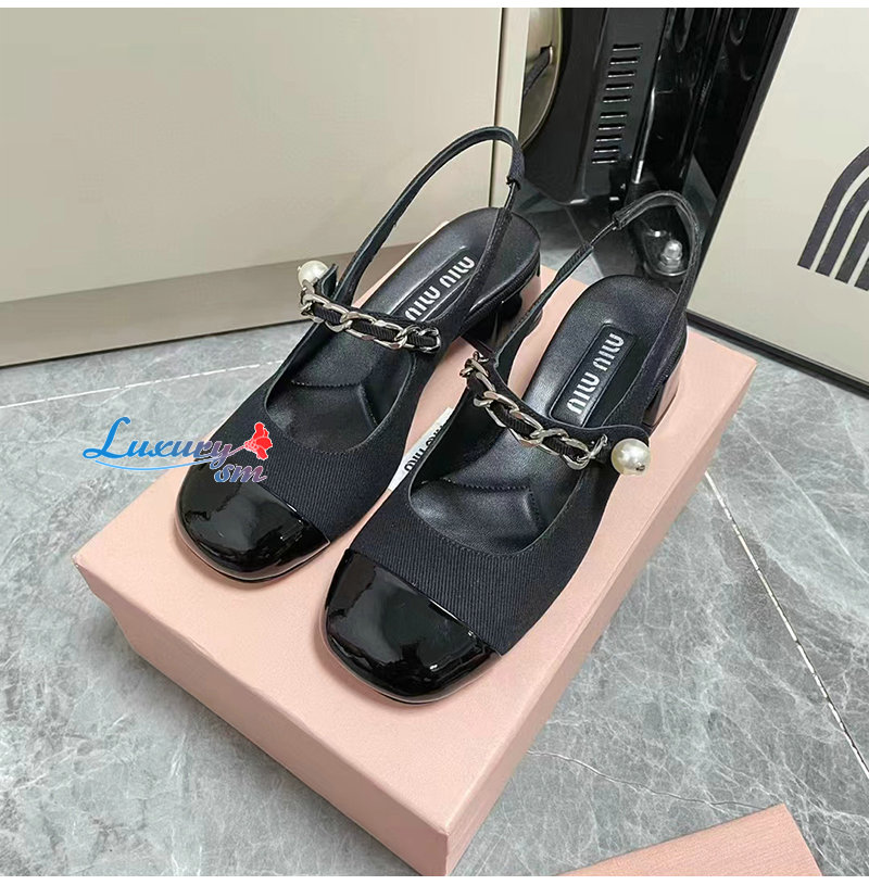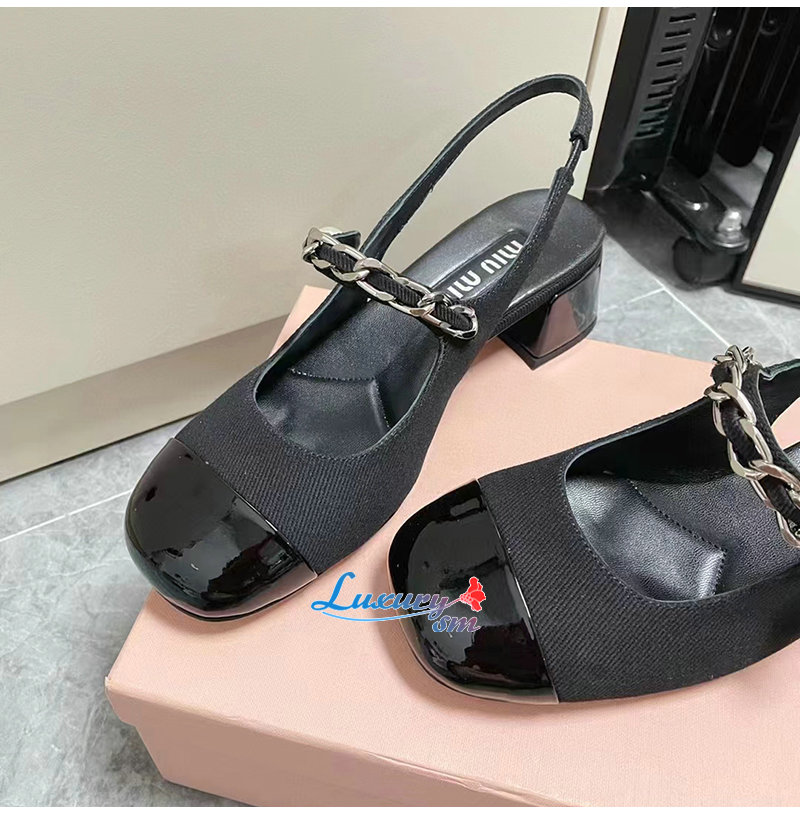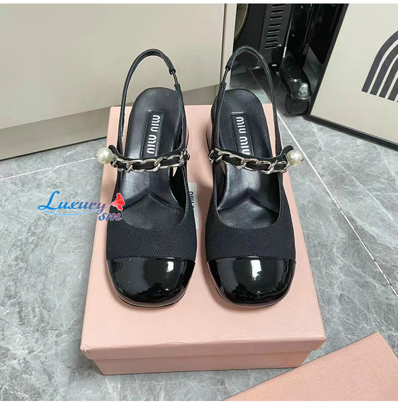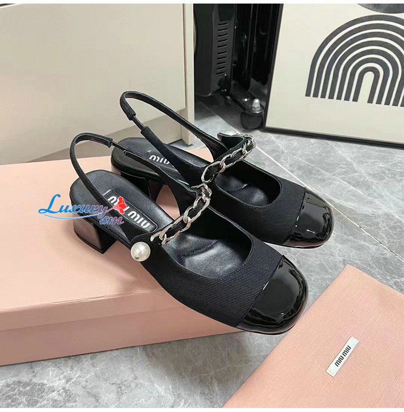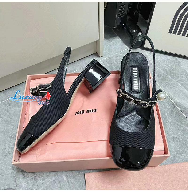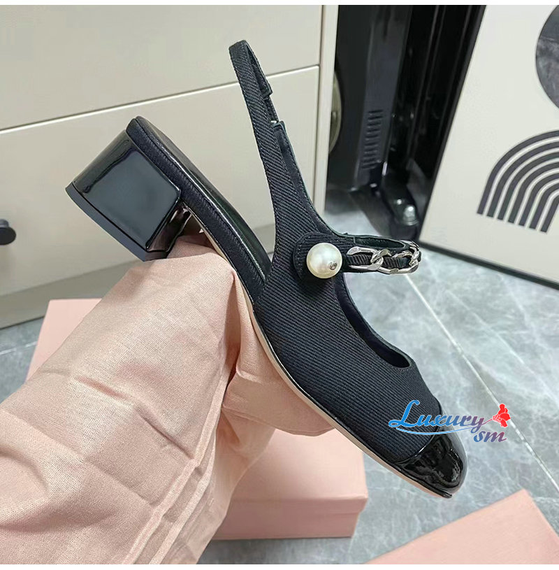 MIUMIU-5I045E 미우미우 블랙 개버딘 슬링백 펌프스