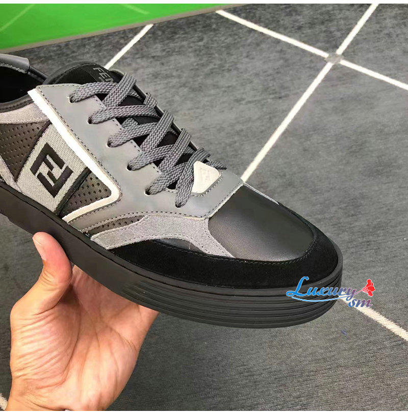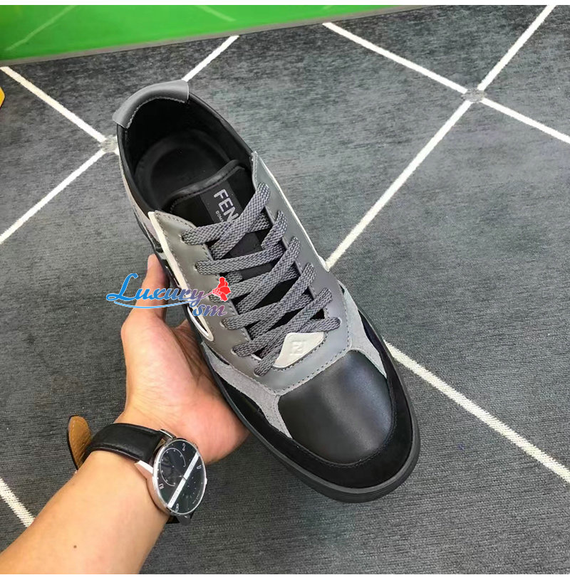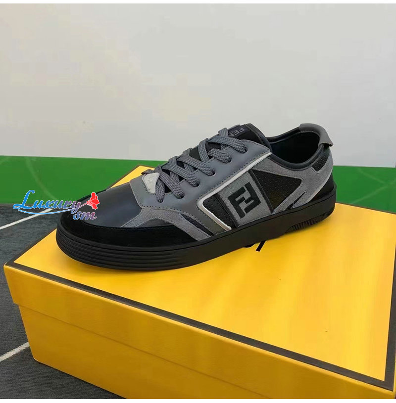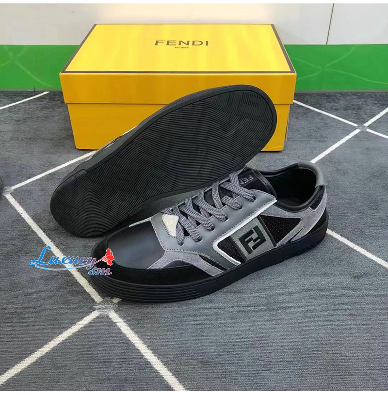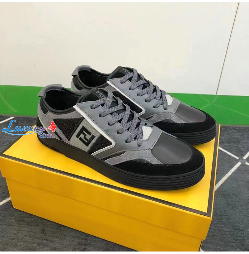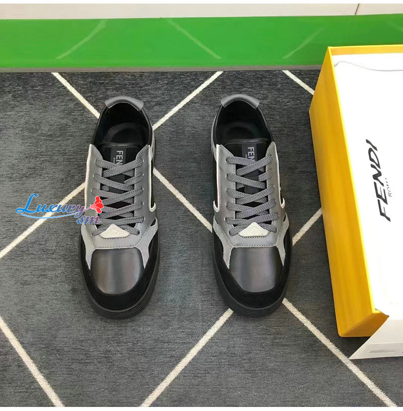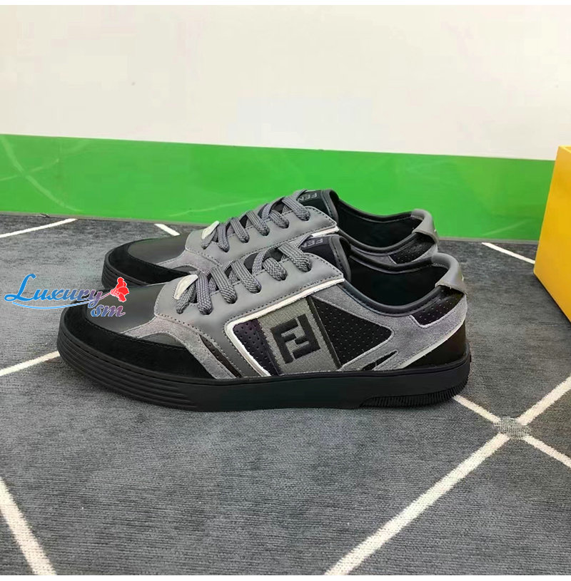 FENDI-7E1631 펜디 그레이 가죽 펜디 스텝 로우탑 스니커즈 남성용