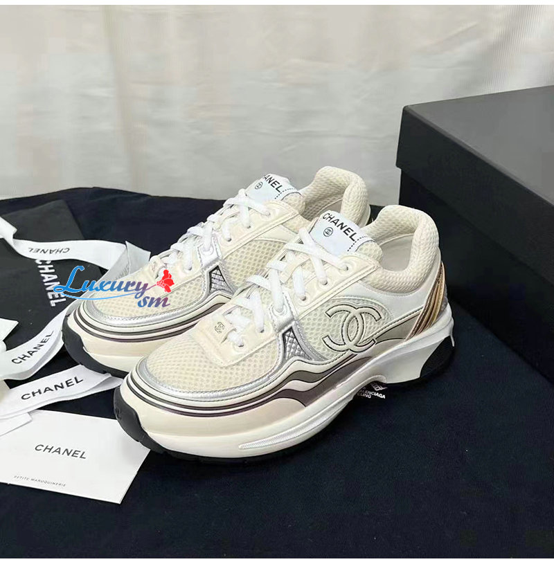 CHANEL-G45077 샤넬 아이보리 패브릭 스니커즈 여성용