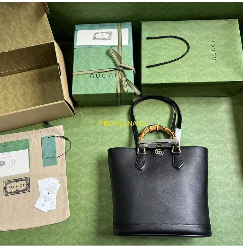 [스페셜오더]GUCCI-750394 1092 구찌 블랙 다이애나 뱀부 핸들 미디엄 토트백