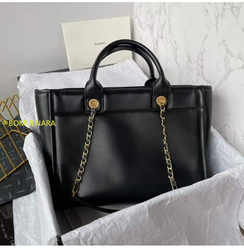 [스페셜오더]CHANEL-AS3257 샤넬 23SS 블랙 카프스킨 골드 도빌 스몰 토트 백