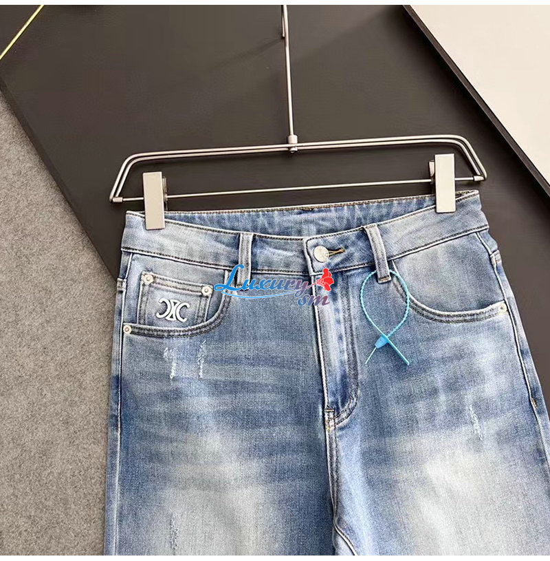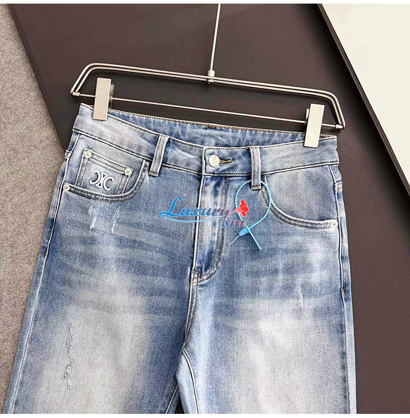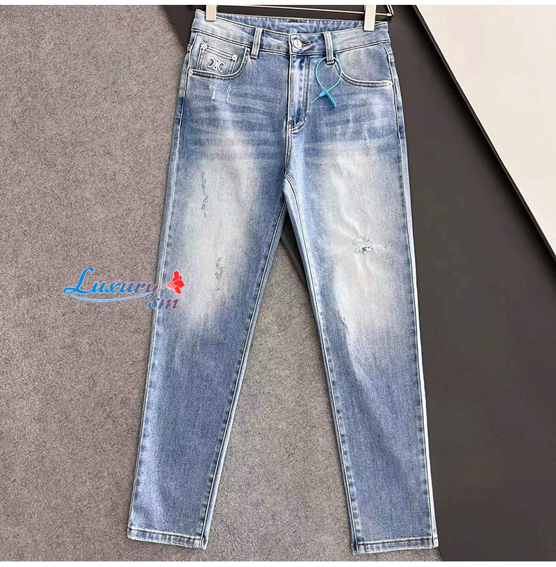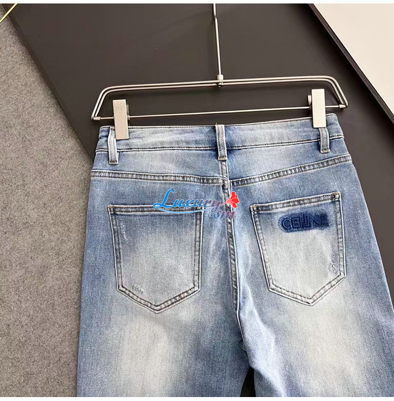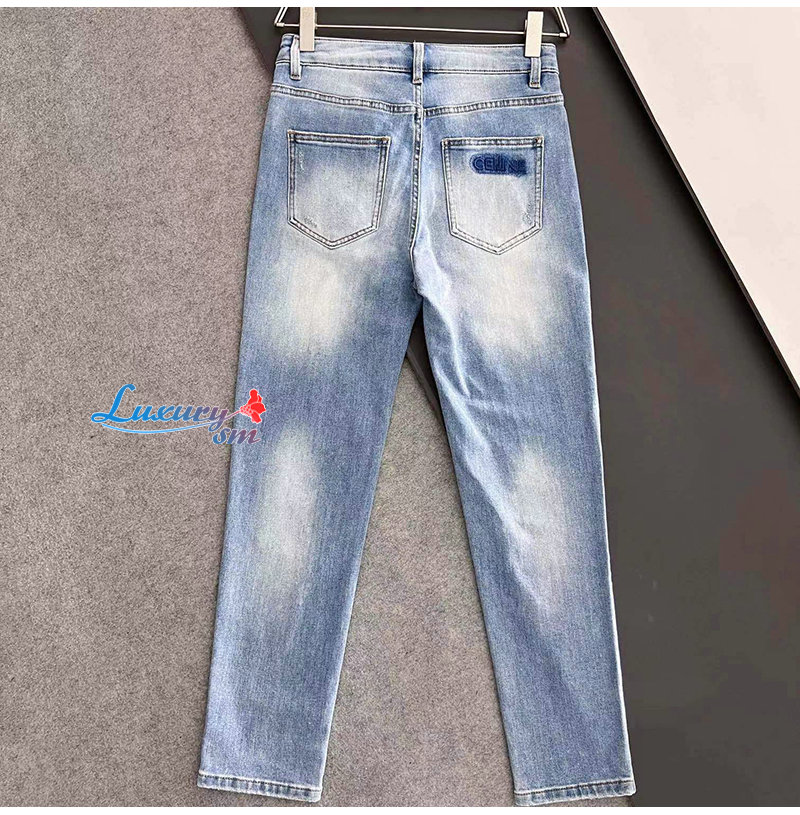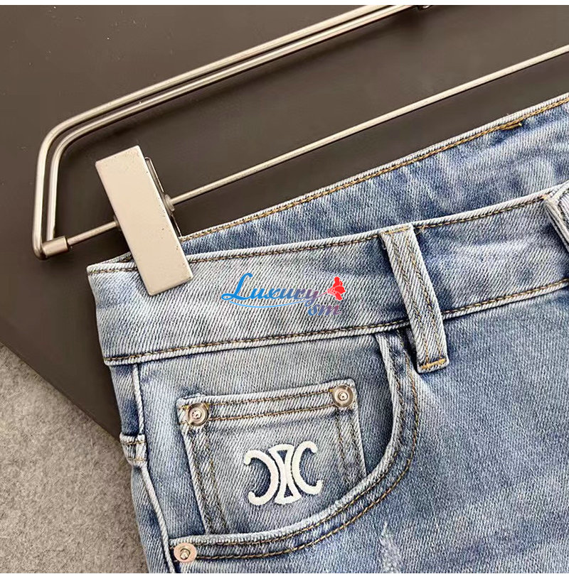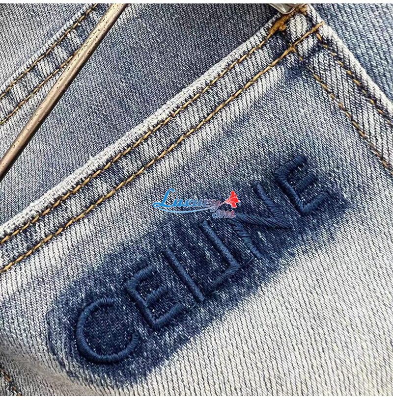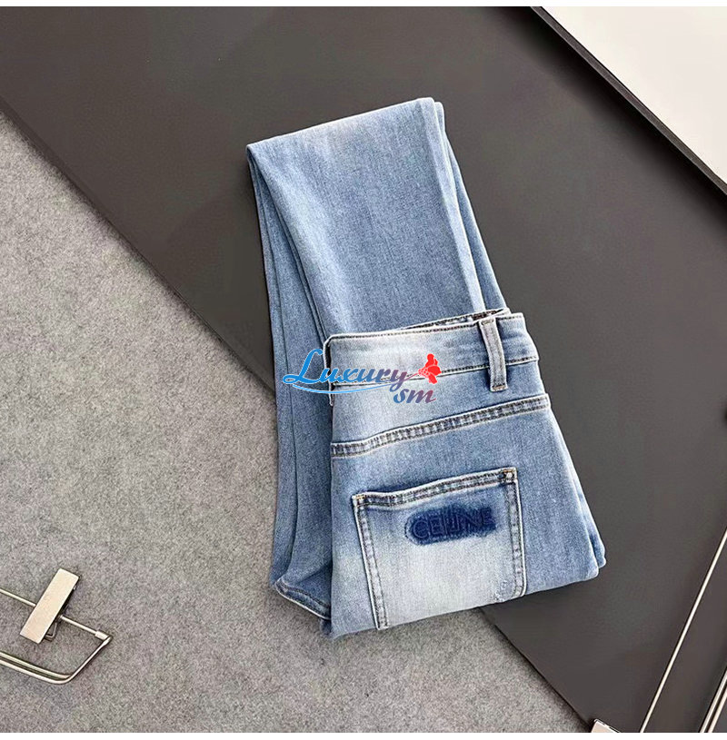 CELINE-08121 셀린느 라이트 블루 아플리케 장식 청바지 남성용