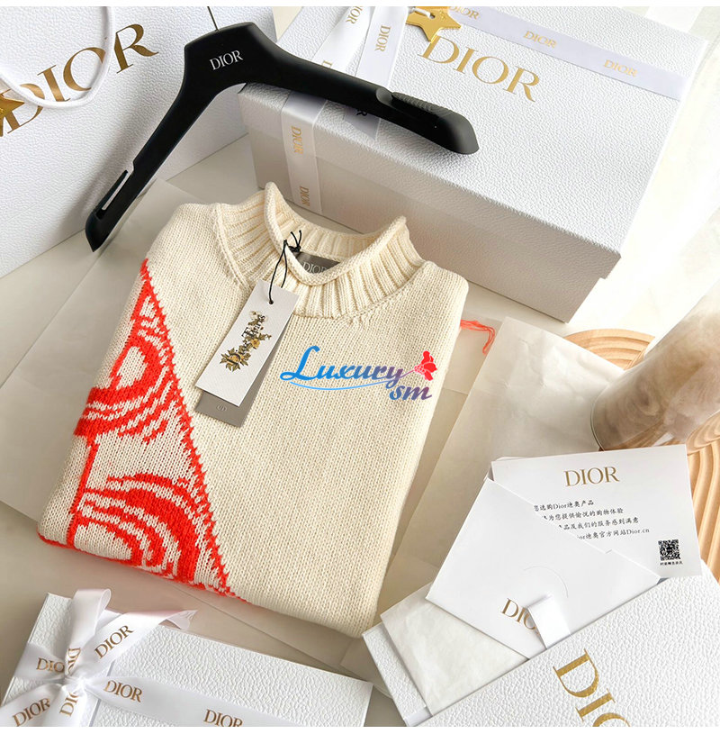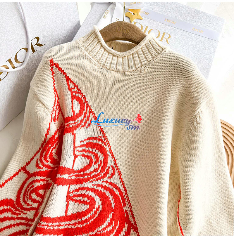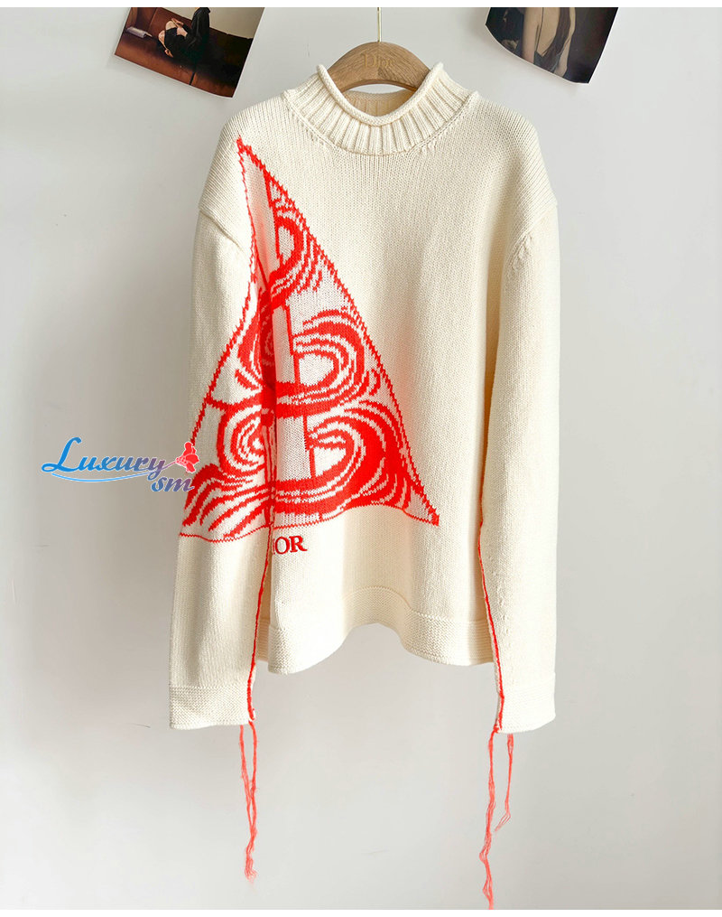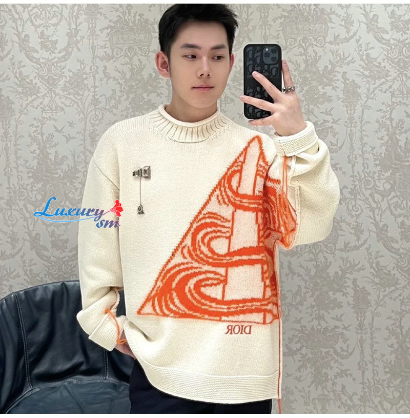 DIOR-393M6 디올 화이트 울 모헤어 블렌드 자카드 스웨터 남성용