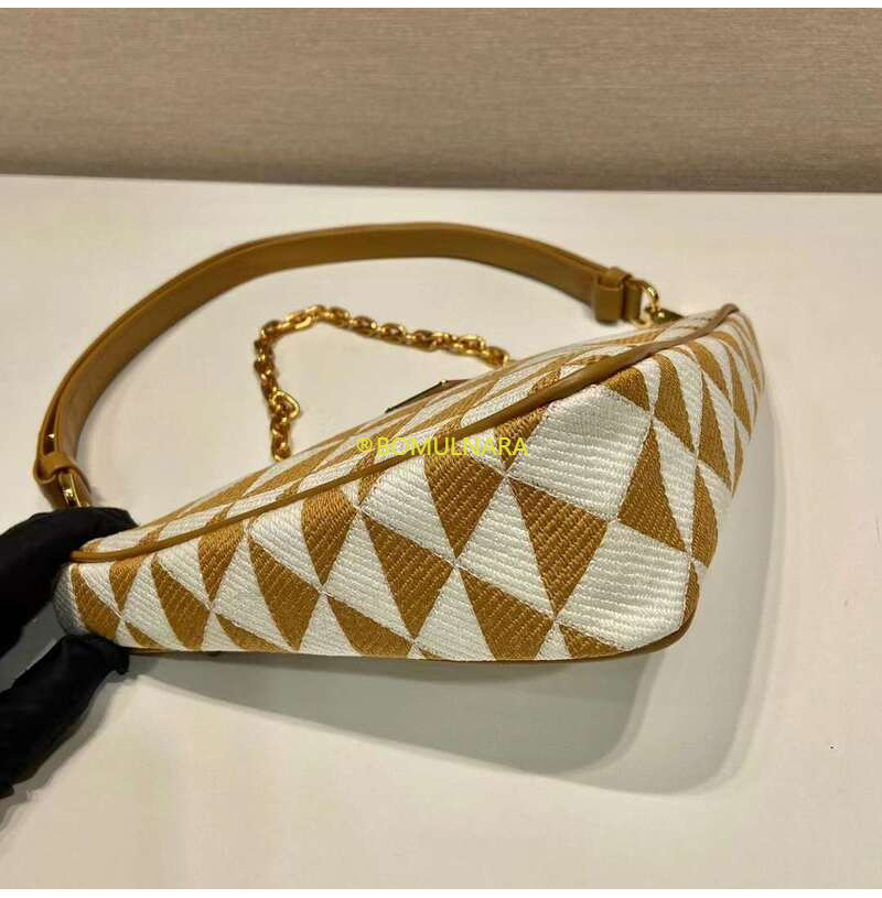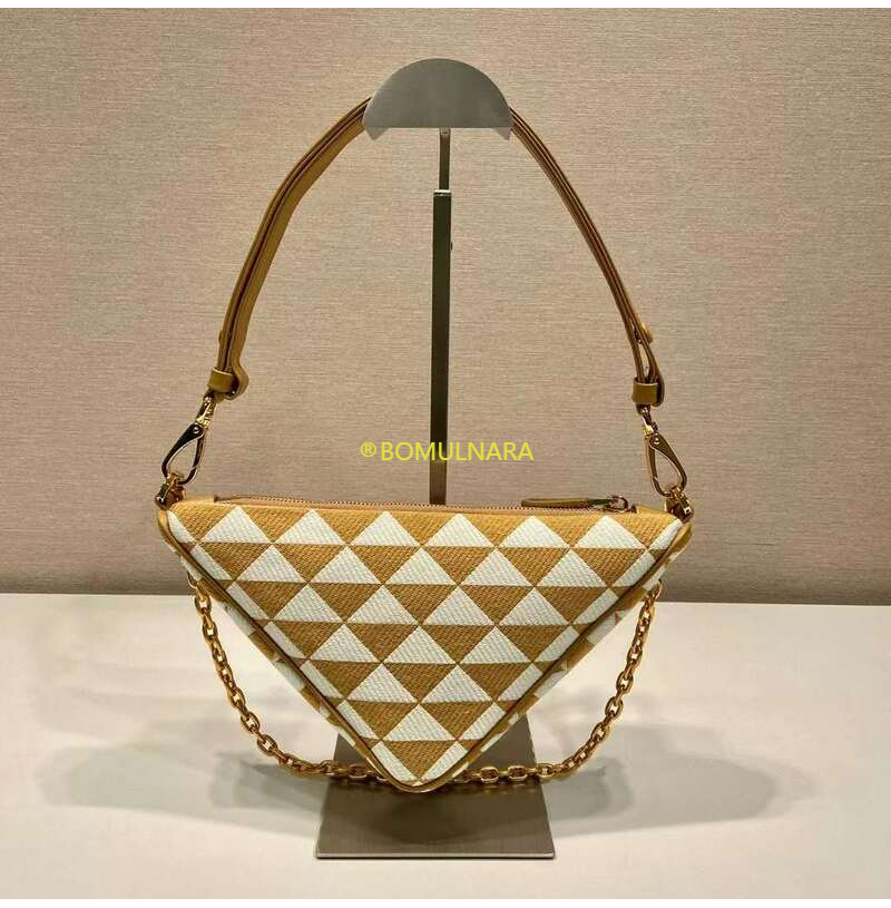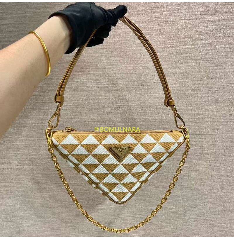 [스페셜오더]PRADA-1BC543 프라다 베이지/초크 화이트 트라이앵글 로고 심볼 자수 패브릭 미니 백