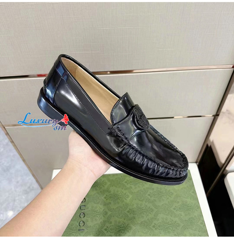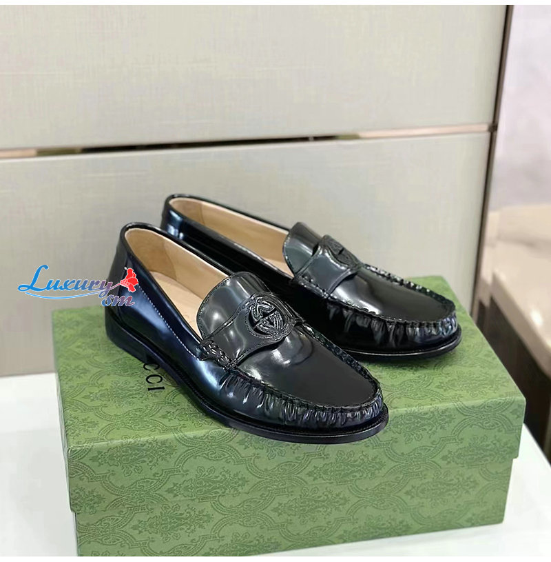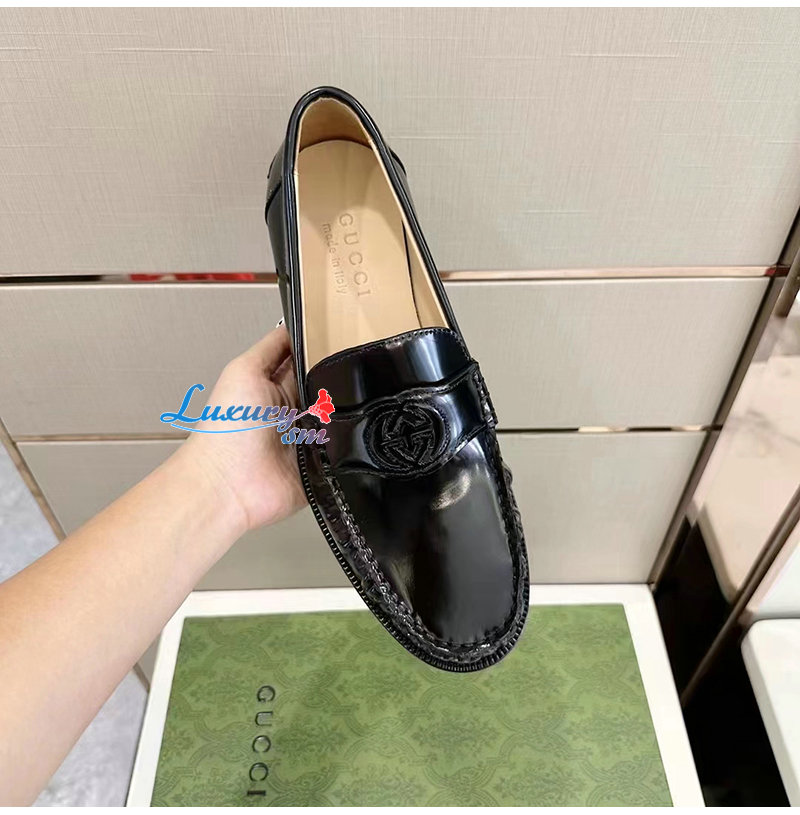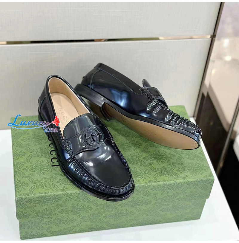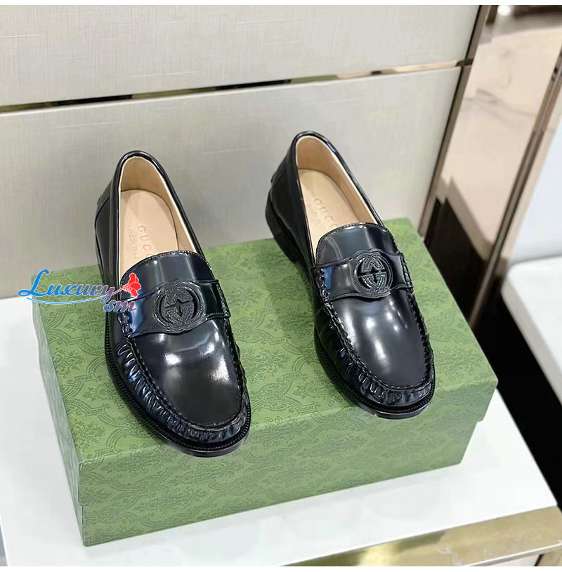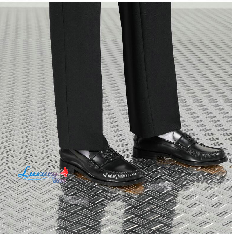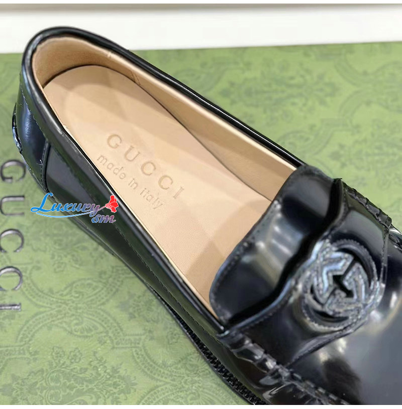 GUCCI-738470 1000 구찌 블랙 가죽 인터로킹 G 로퍼 남성용