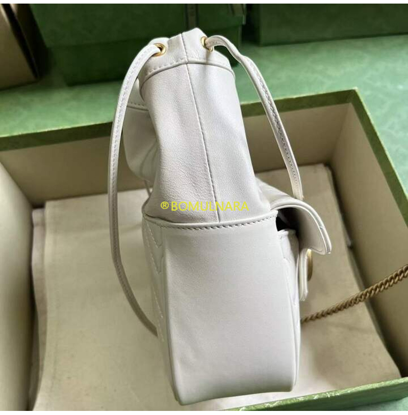 [스페셜오더]GUCCI-746433 9022 구찌 화이트 마틀라세 쉐브론 가죽 GG 마몽 미니 버킷백