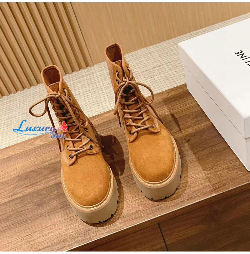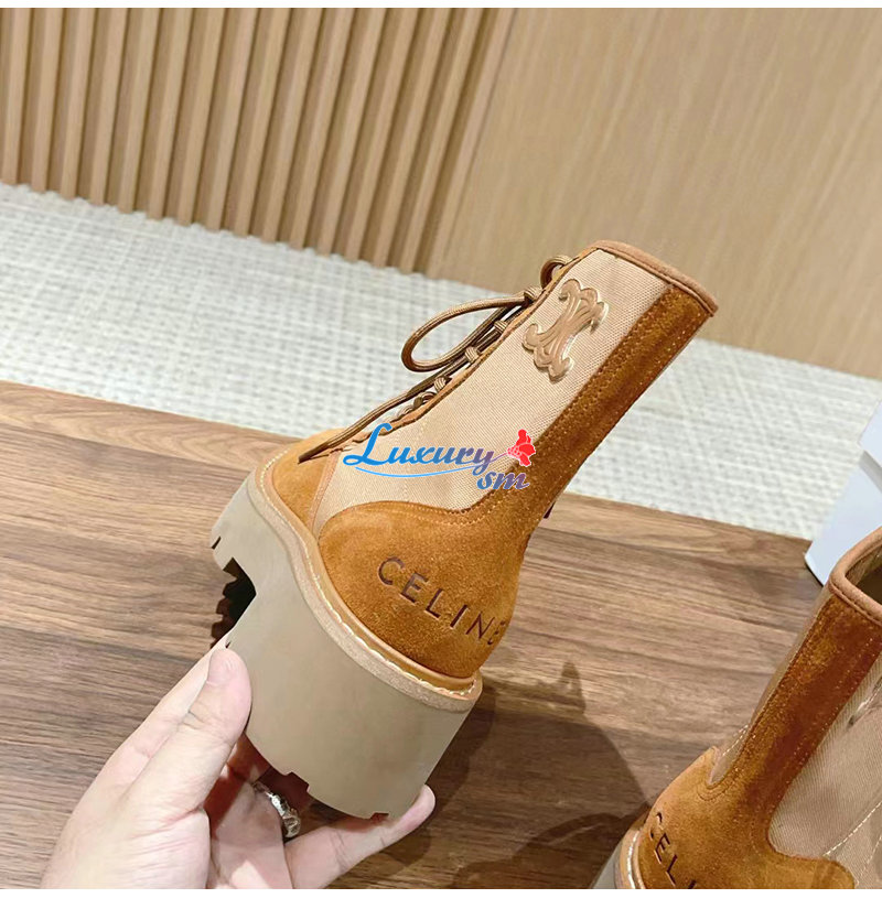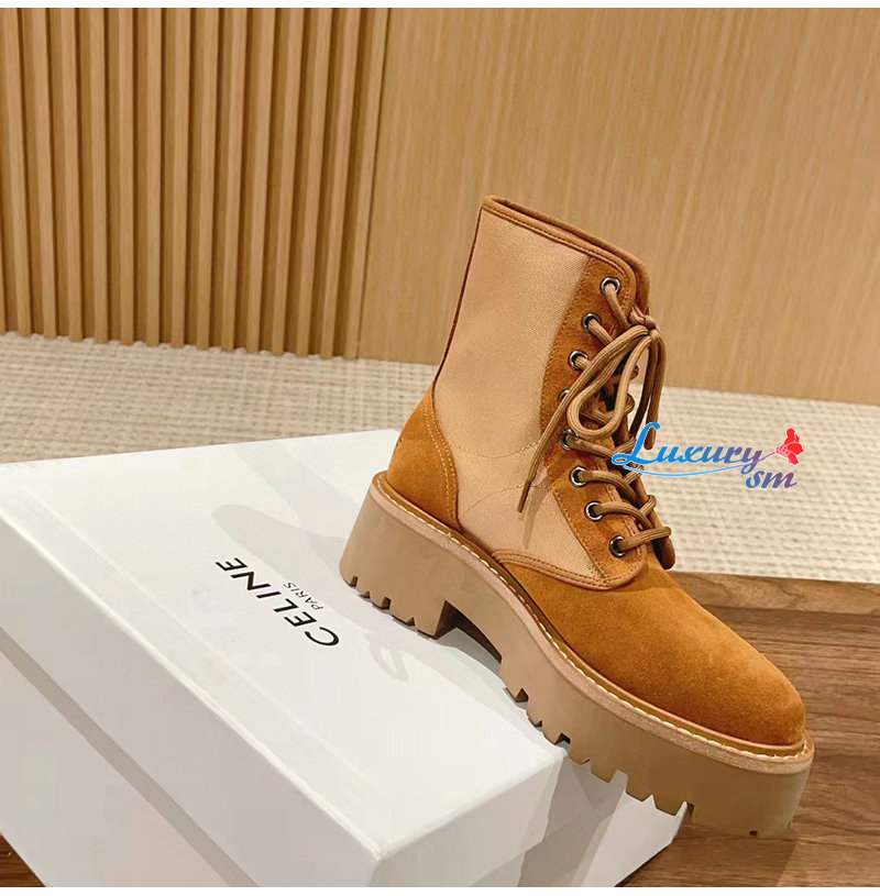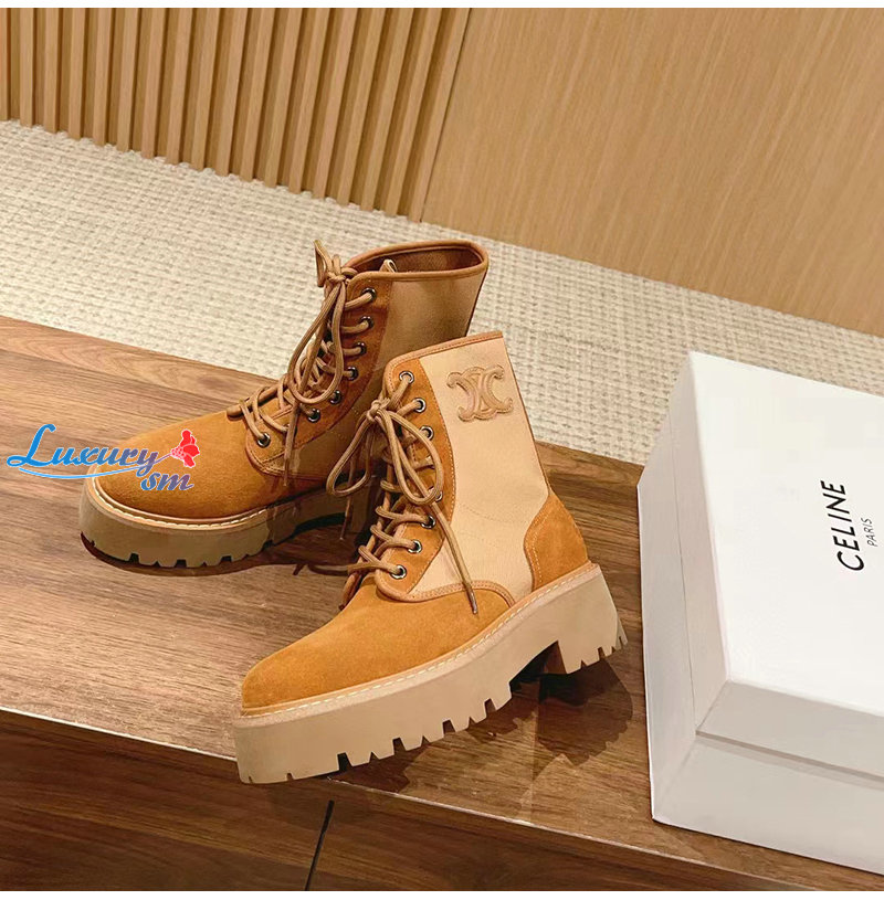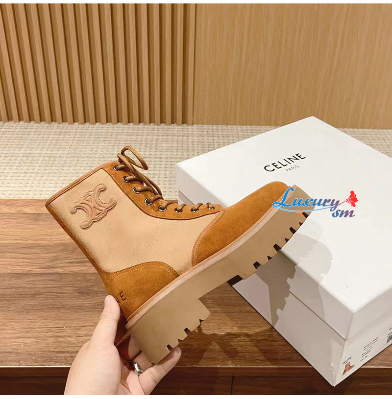 CELINE-354657 셀린느 브라운 트리옹프 벌키 레이스업 부츠 여성용