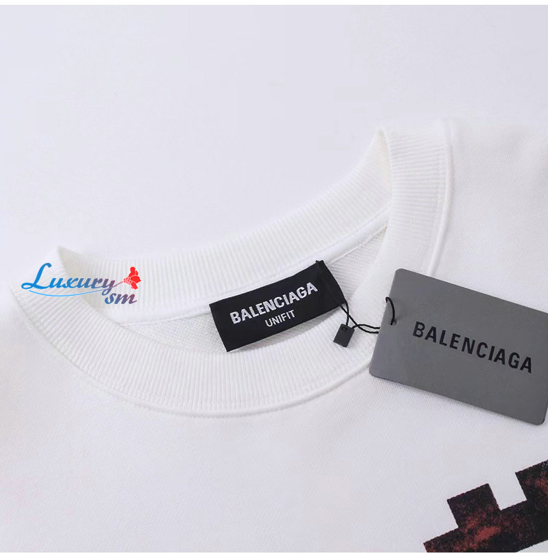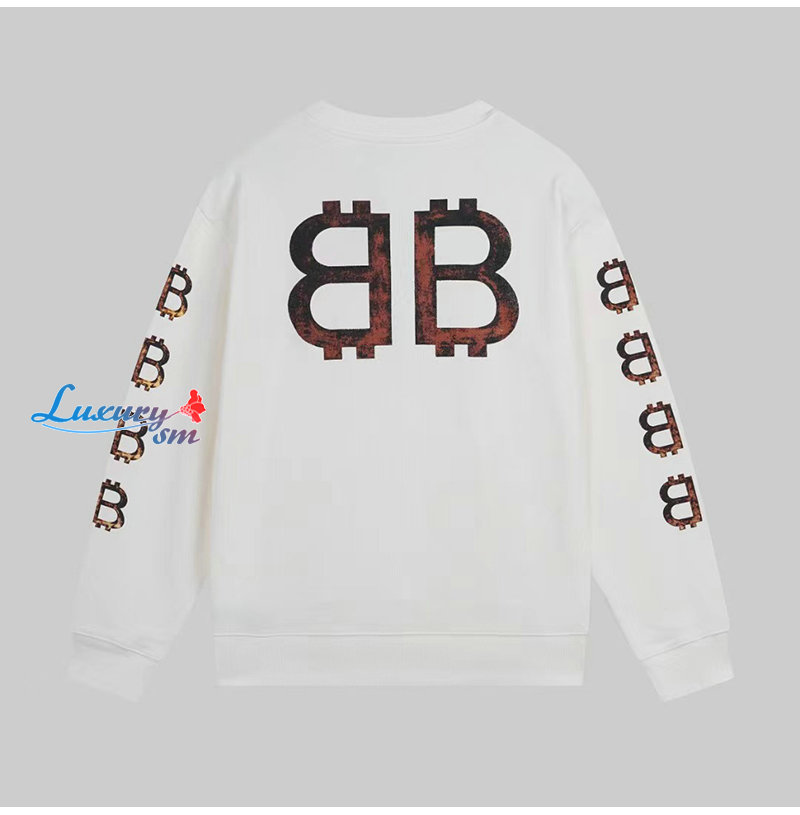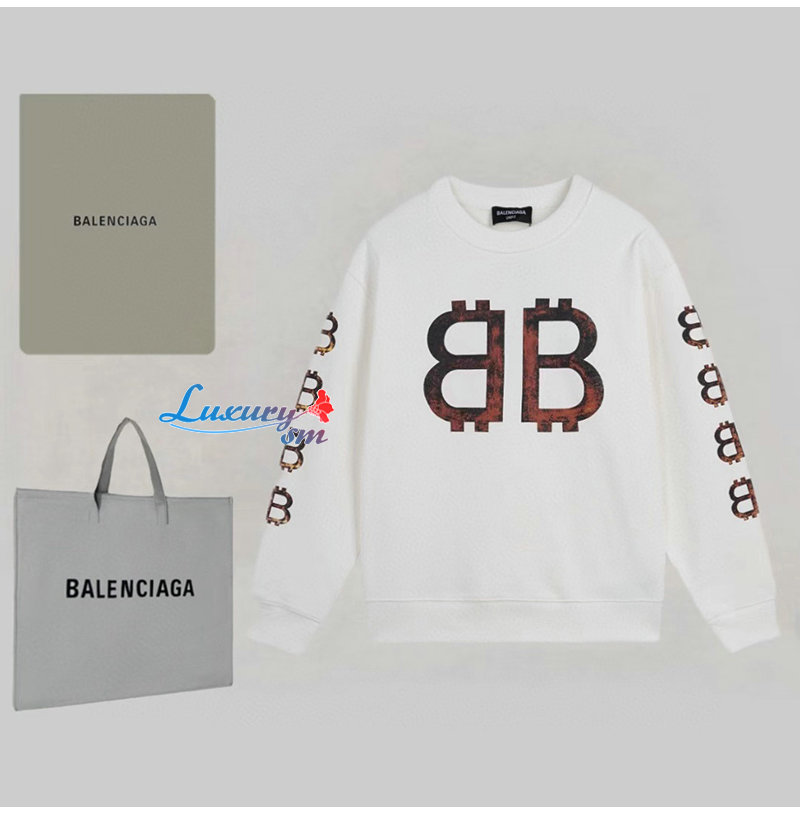 BALENCIAGA-08223 발렌시아가 화이트 BB 프린트 장식 스웨트셔츠 남성용