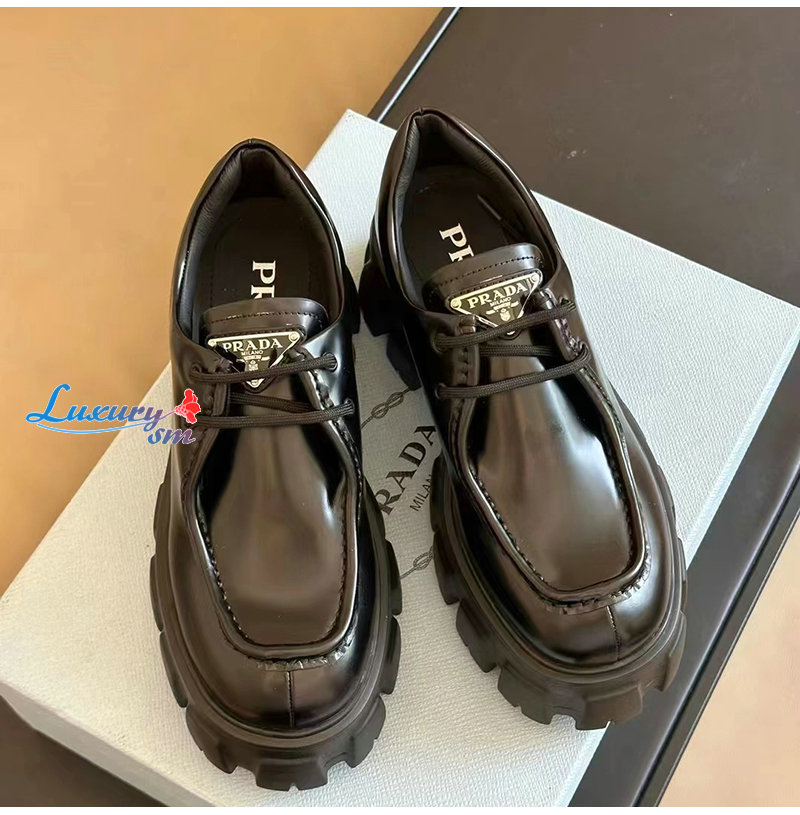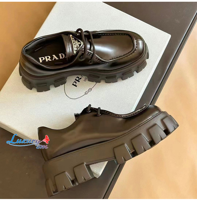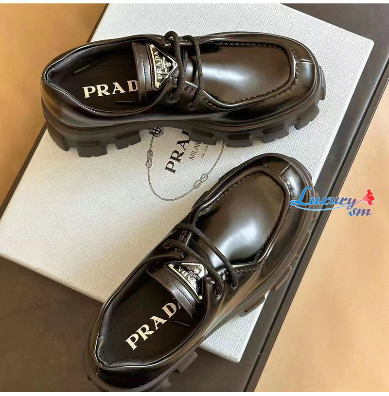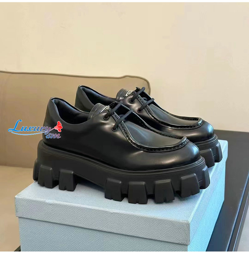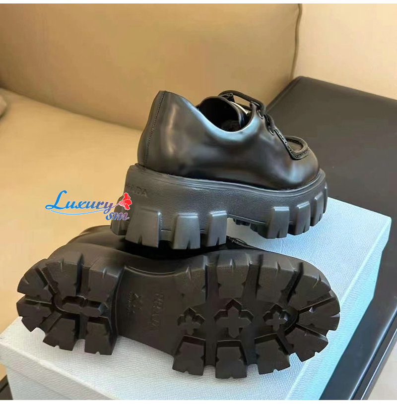 PRADA-1E254N 프라다 블랙 모놀리스 브러시드 가죽 레이스업 슈즈 여성용