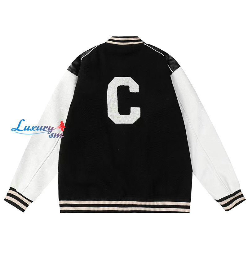 CELINE-082911 셀린느 블랙/화이트 아플리케 장식 베이스볼 재킷 남성용