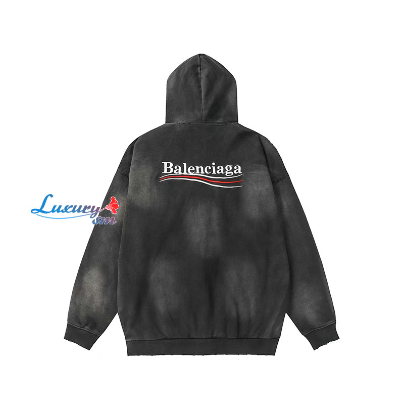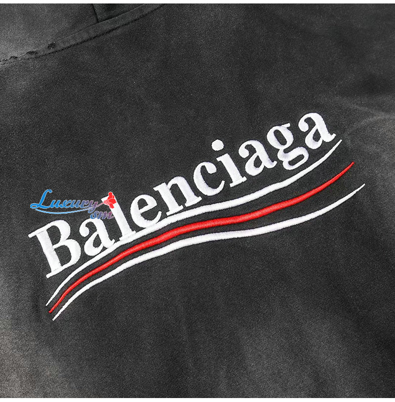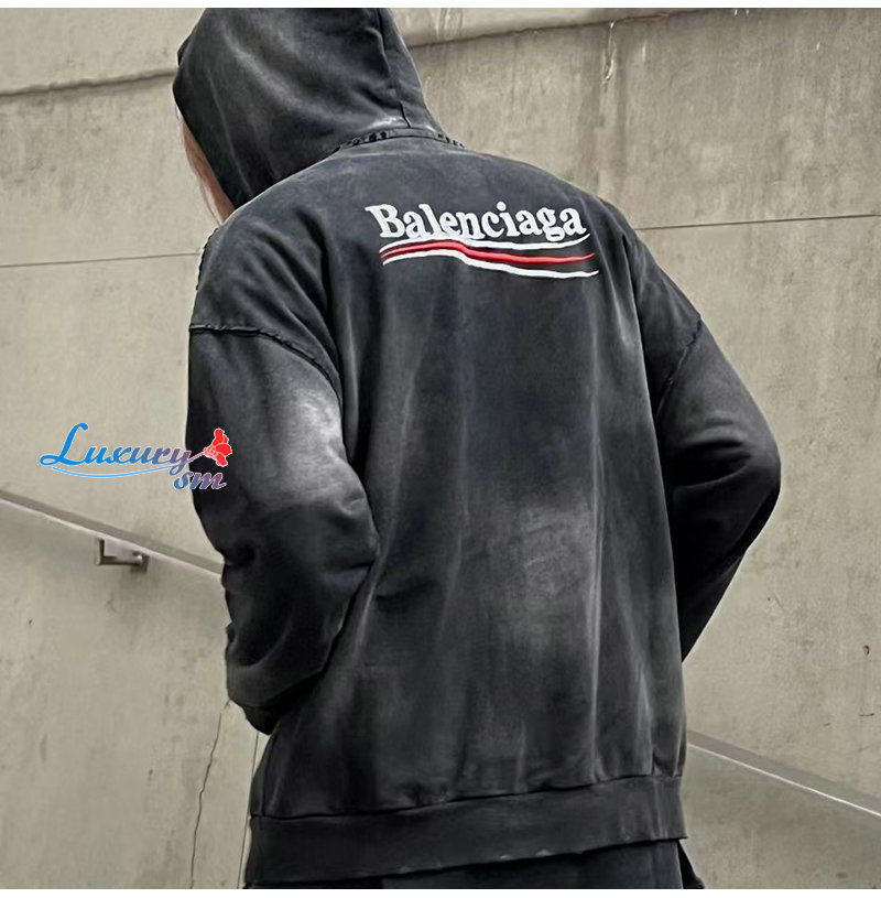 BALENCIAGA-09035 발렌시아가 블랙 아플리케 장식 워싱 빈티지 후드 재킷 남여공용