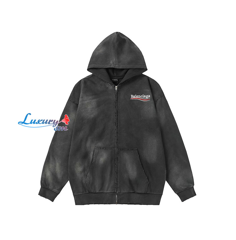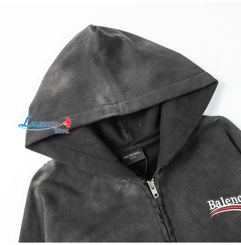 BALENCIAGA-09032 발렌시아가 그레이 아플리케 장식 워싱 빈티지 후드 재킷 남여공용