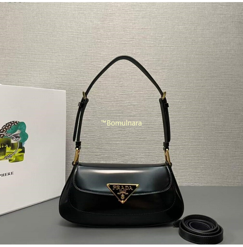 [스페셜오더]PRADA-1BD345 프라다 블랙 브러쉬드 가죽 숄더백 24CM