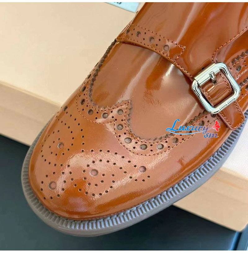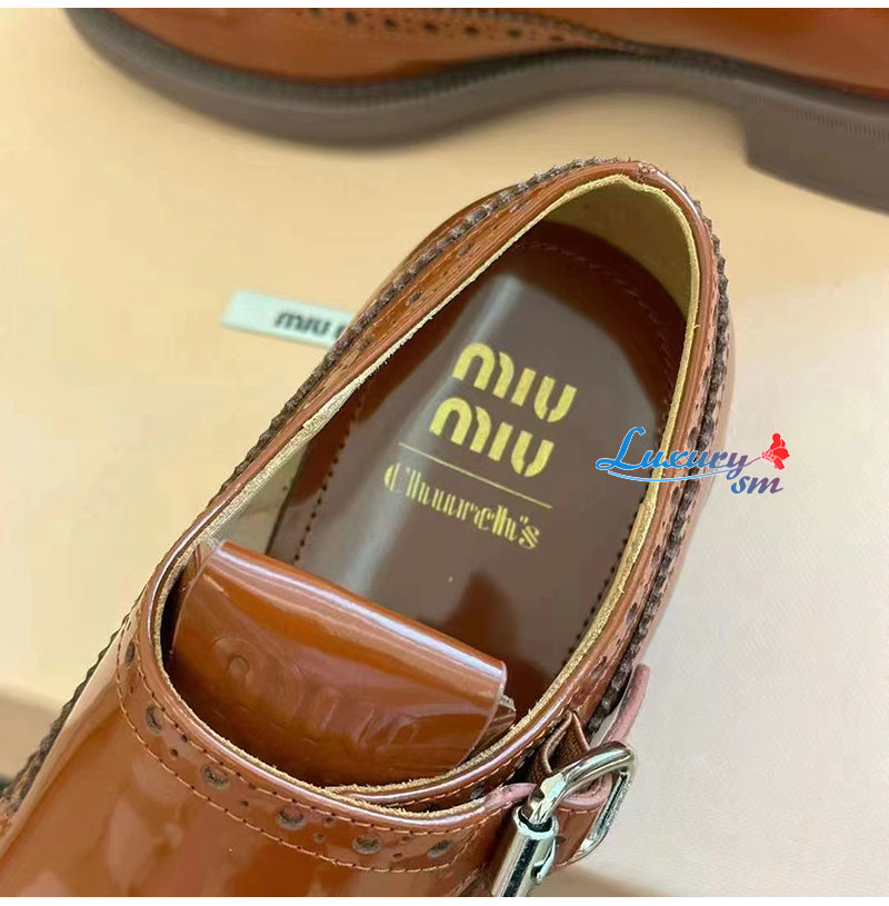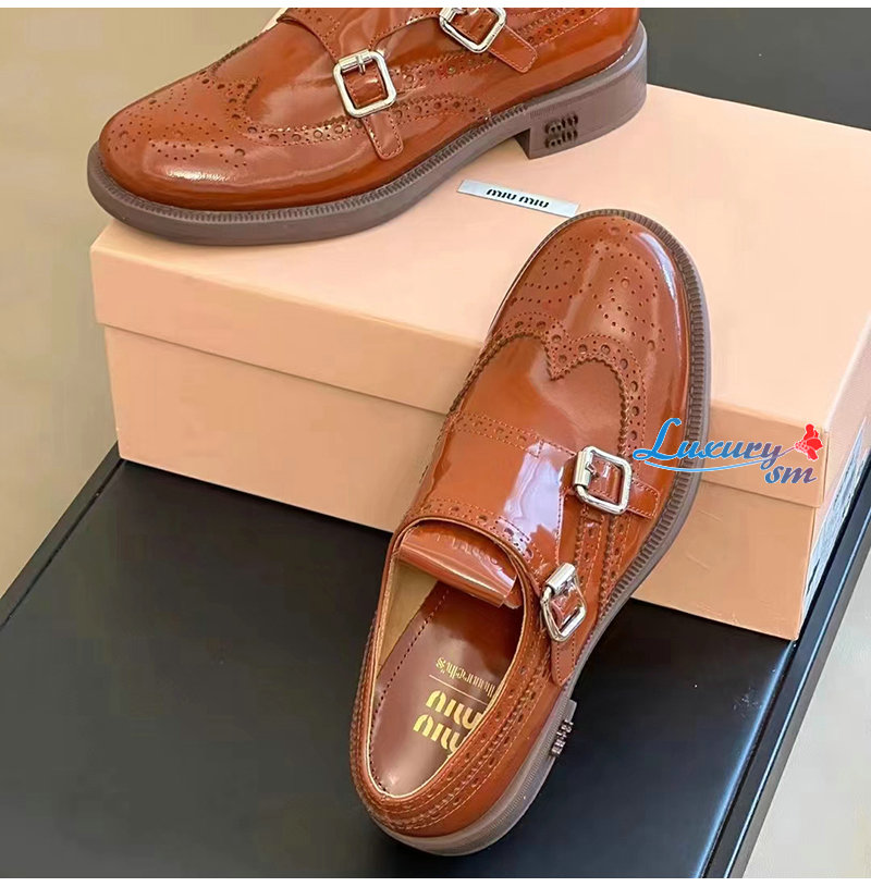 MIUMIU-5E039E 미우미우 타바코 처치스 x 미우미우 더블 몽크 브로그 슈즈 여성용