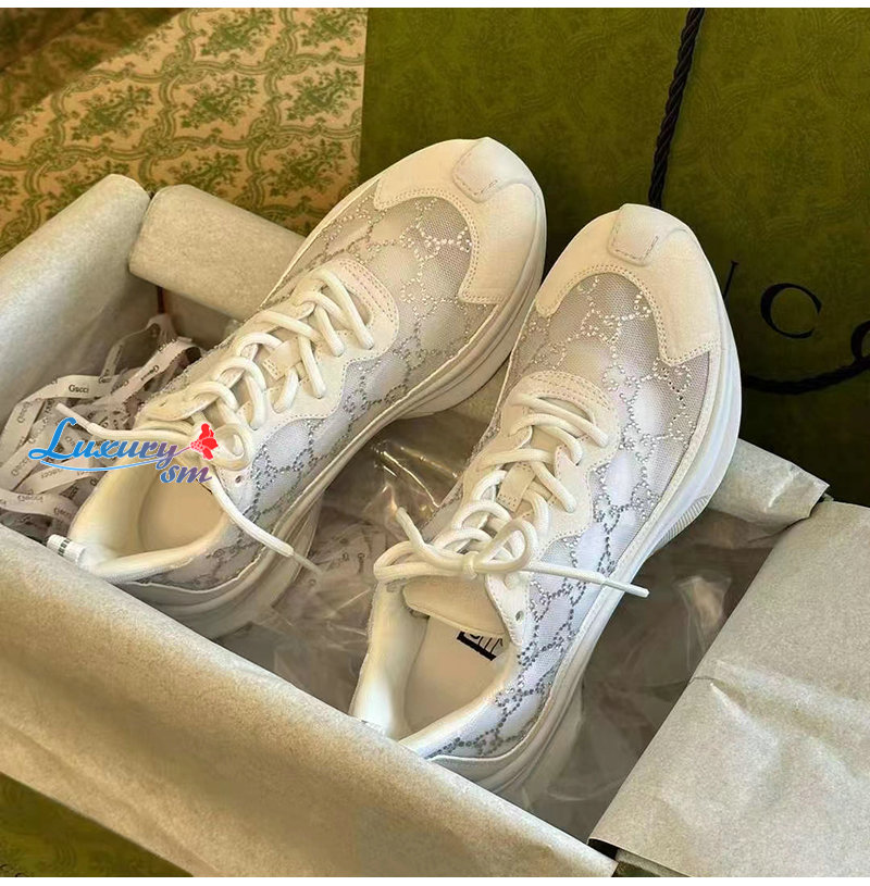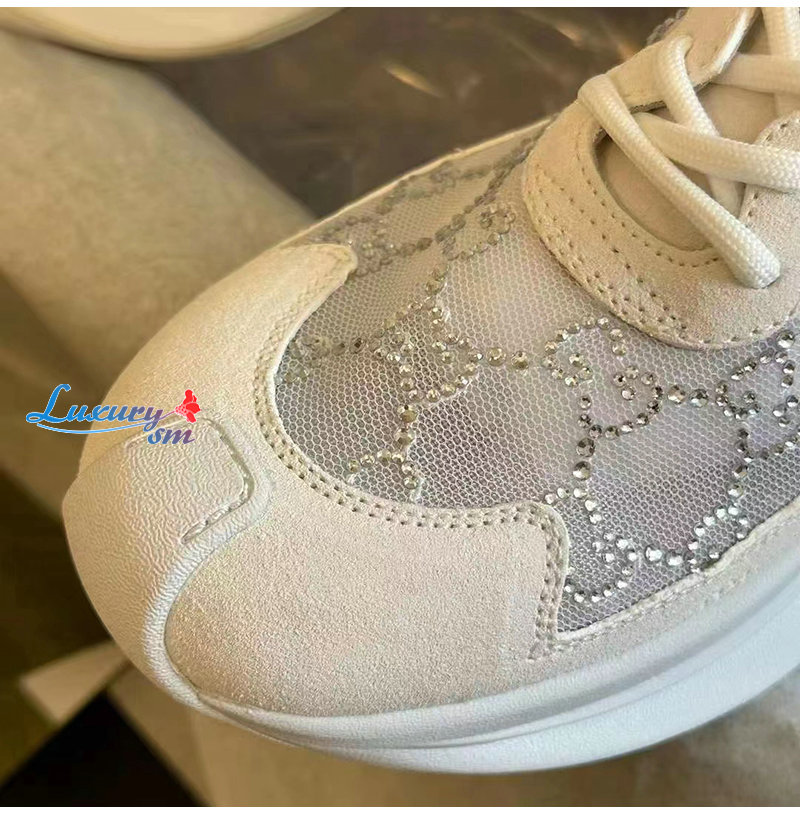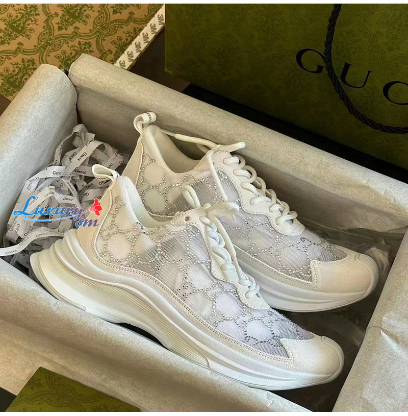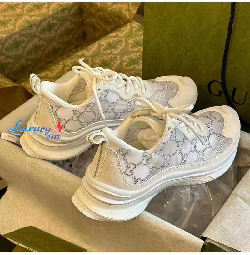 GUCCI-758088 9086 구찌 화이트 GG 크리스털 메시 구찌 런 스니커즈 여성용