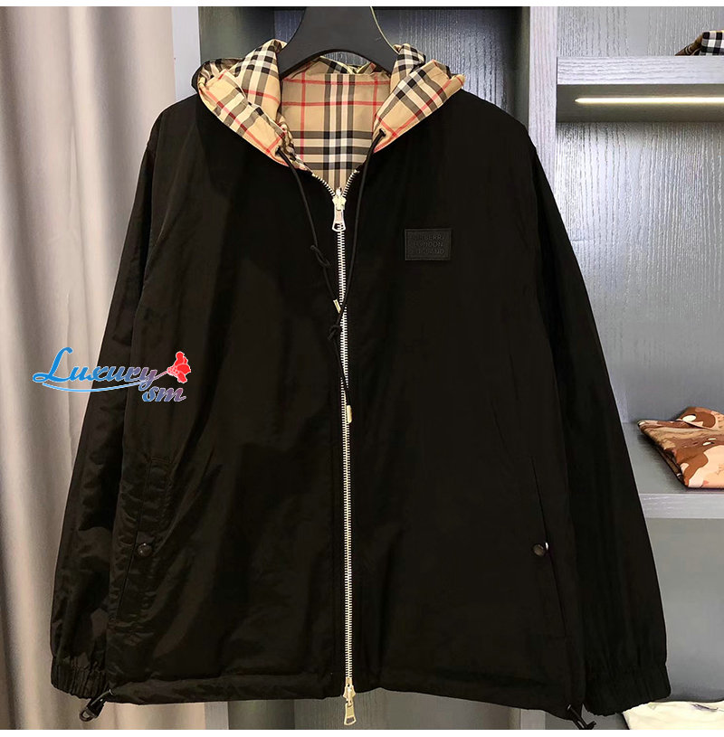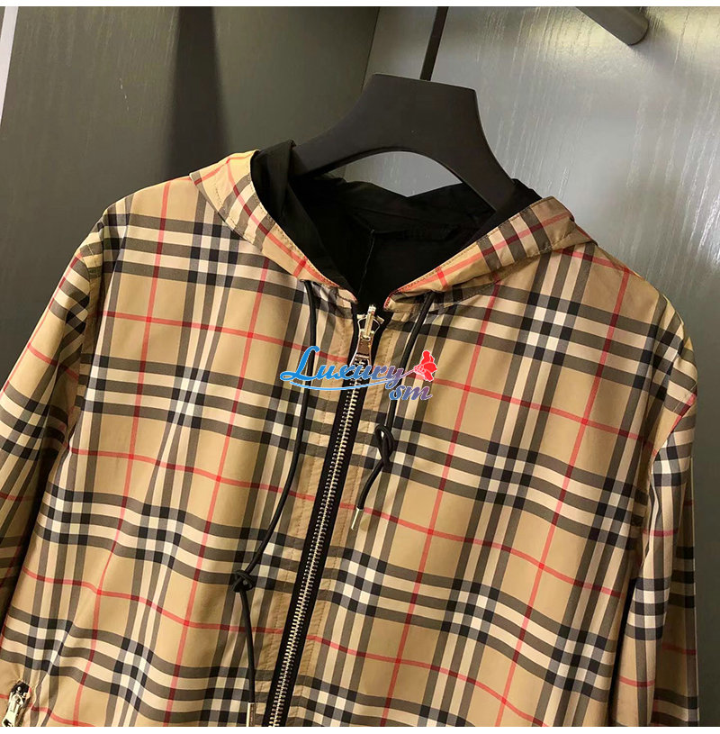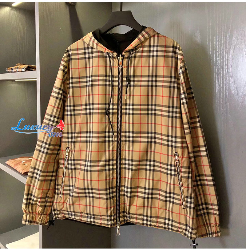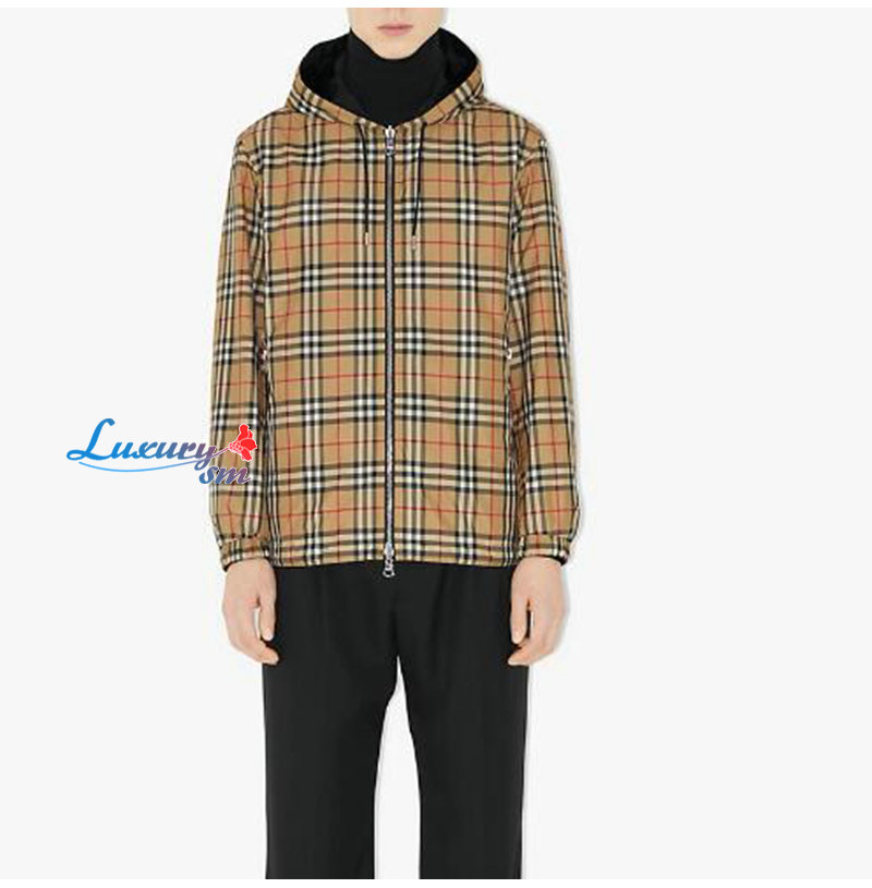 BURBERRY-80270971 버버리 베이지 체크 리버시블 양면 재킷 남성용