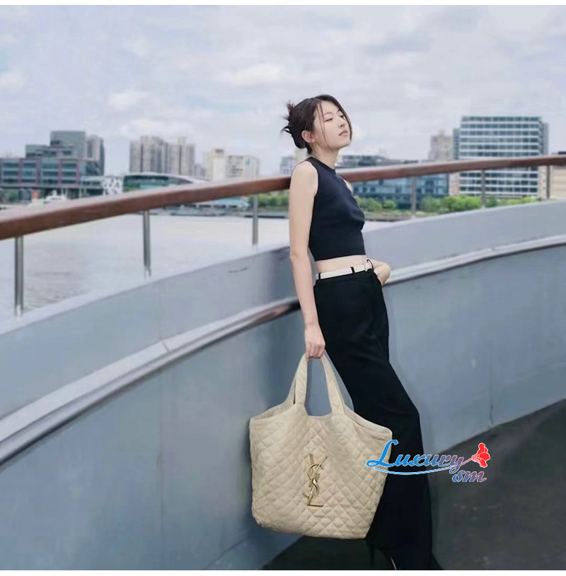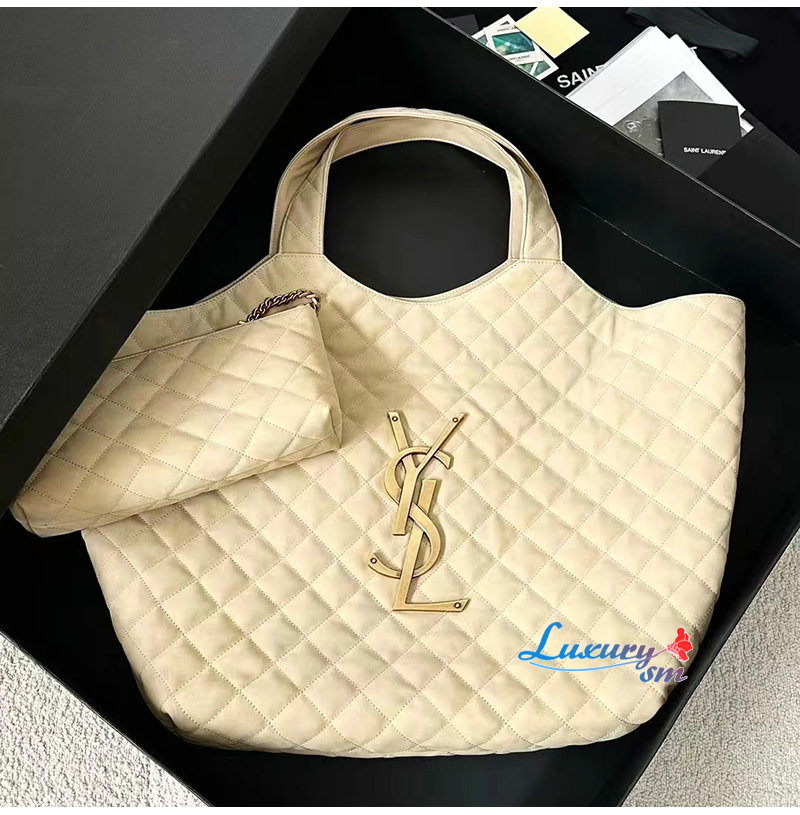 [스페셜오더]SAINT LAURENT-698651 생 로랑 베이지 퀄트 램스킨 ICARE 맥시 쇼퍼백
