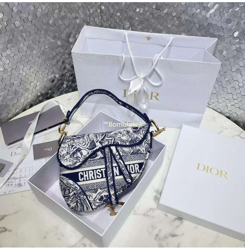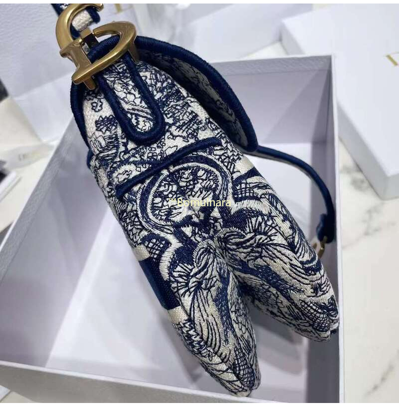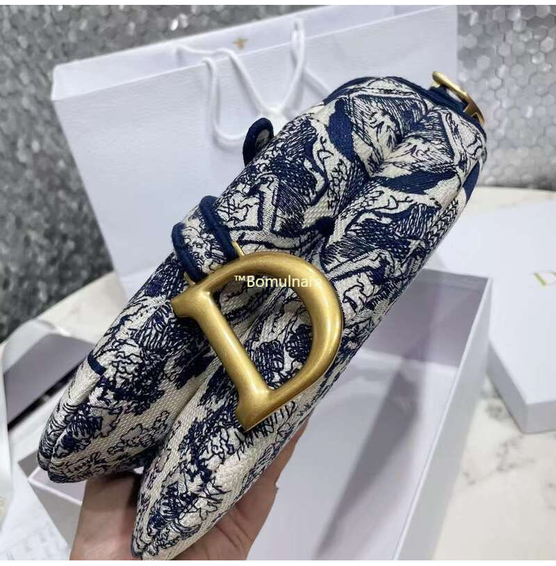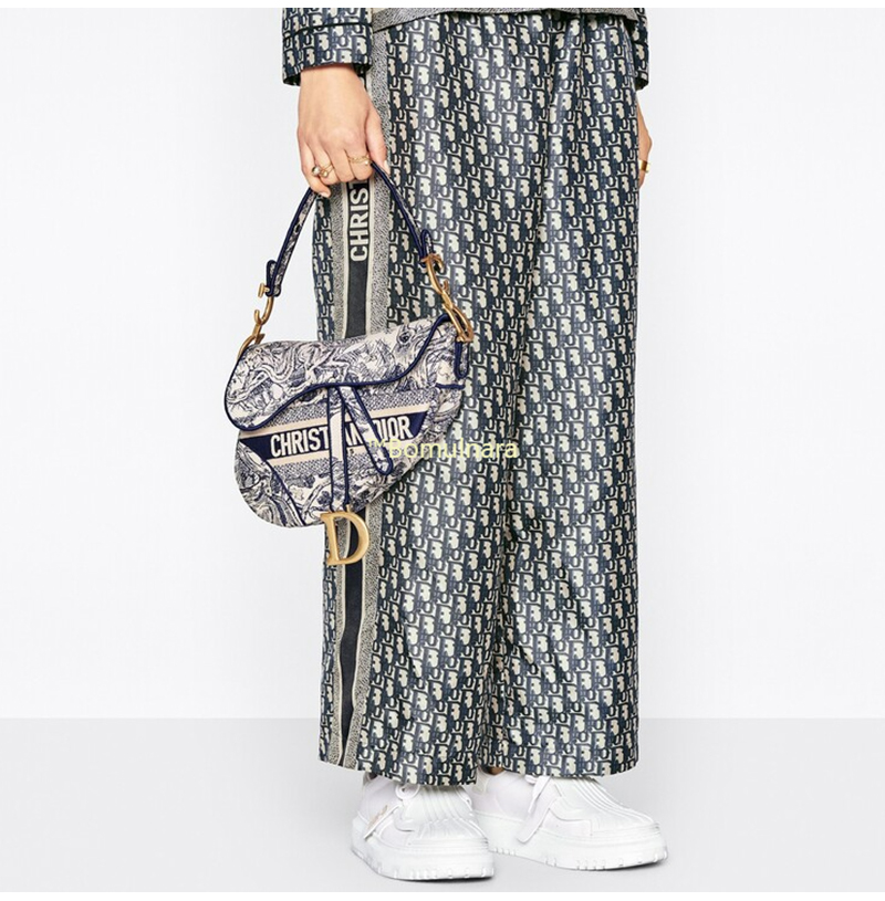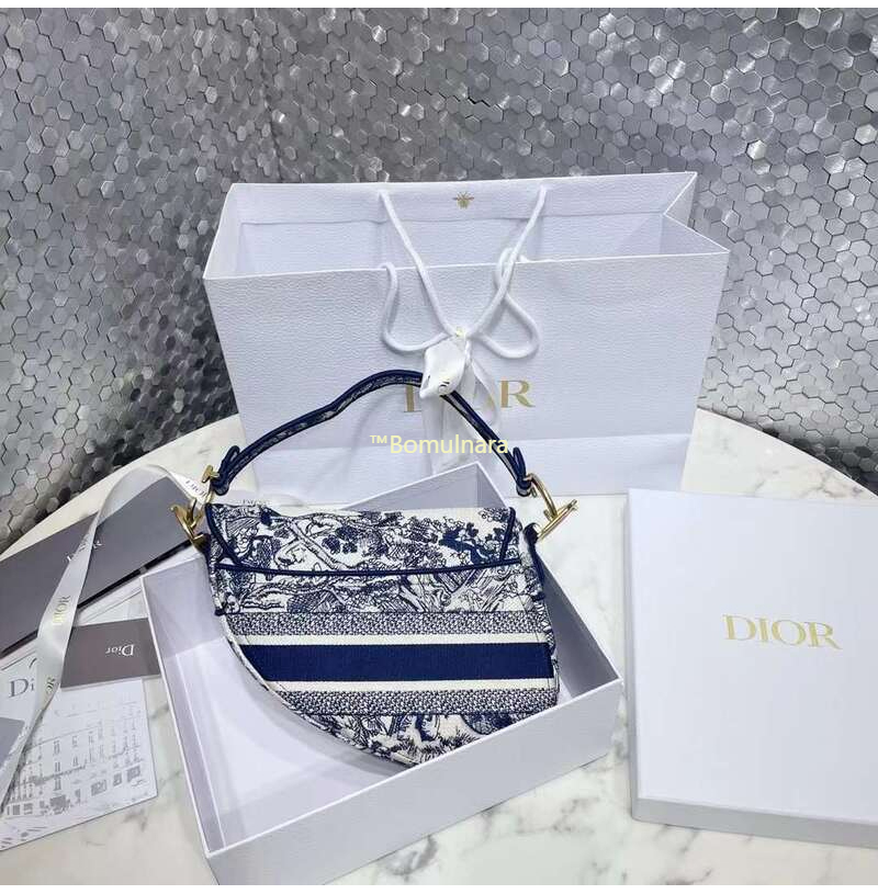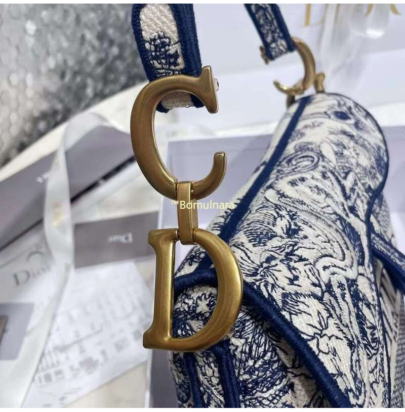 [스페셜오더]CHRISTIAN DIOR-M0446 디올 블루 Toile de Jouy 자수 SADDLE 백 25CM