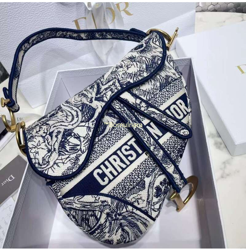 [스페셜오더]DIOR-1ADPO 디올 네이비 블루 CD Diamond 캔버스 SADDLE 백 26CM