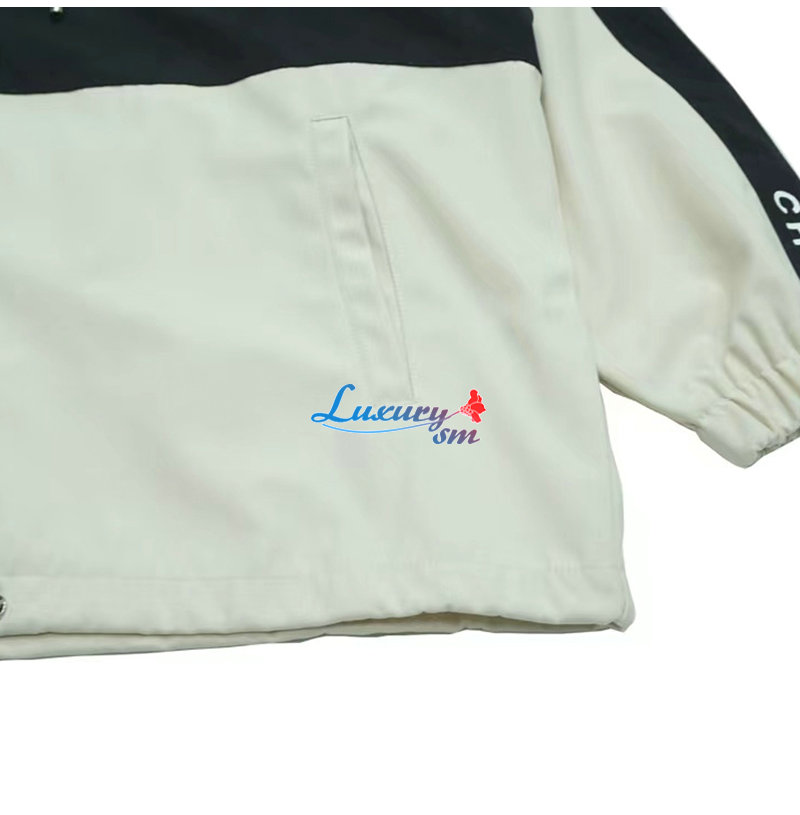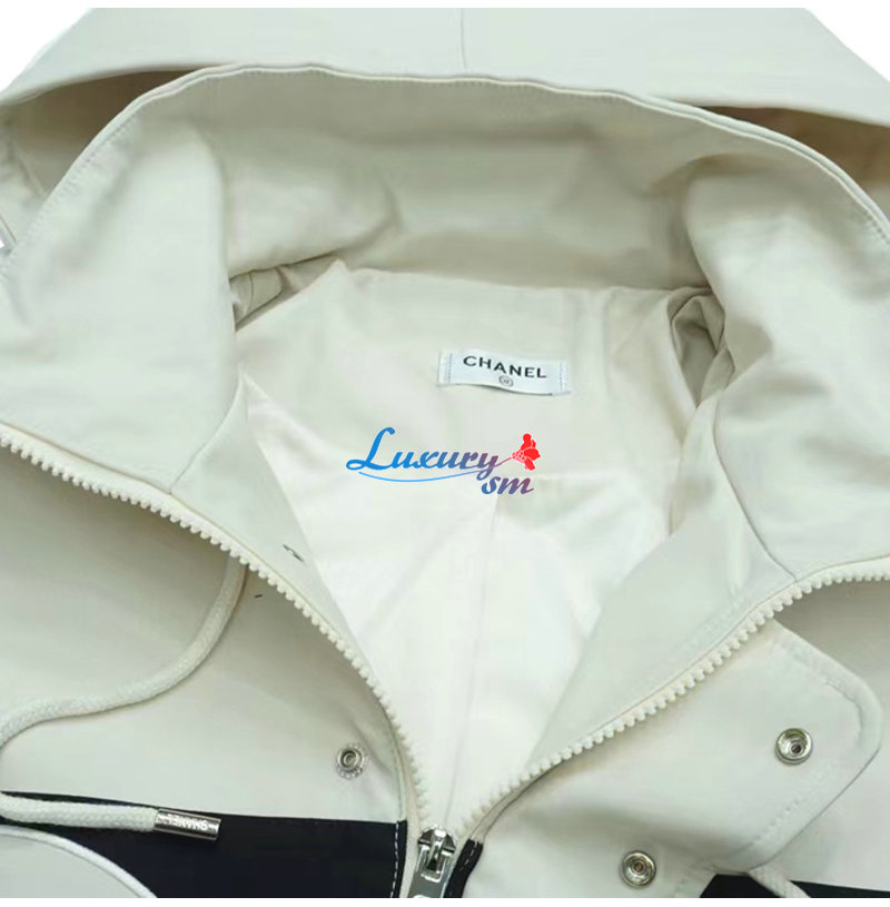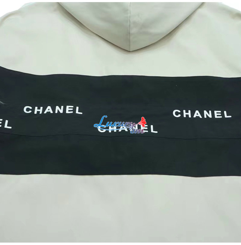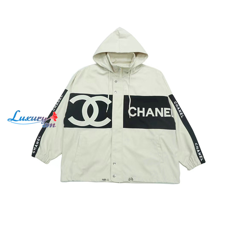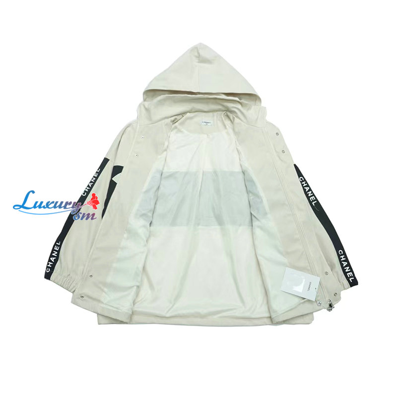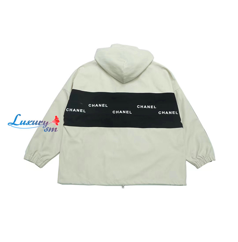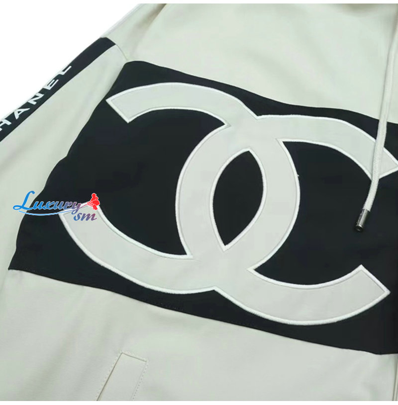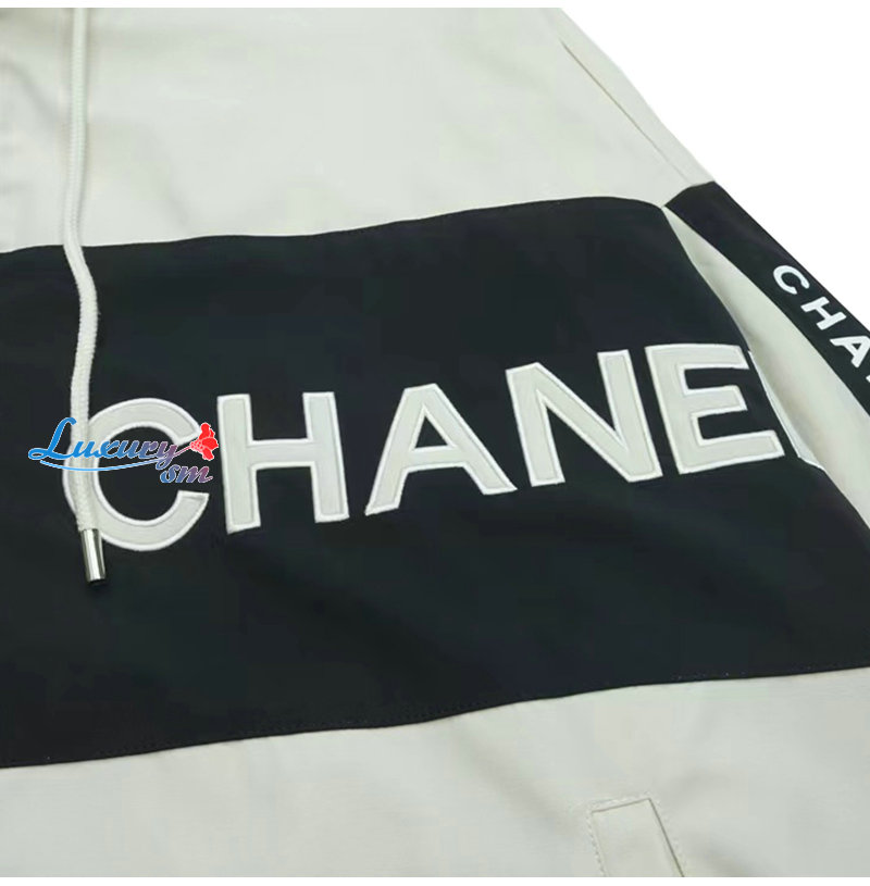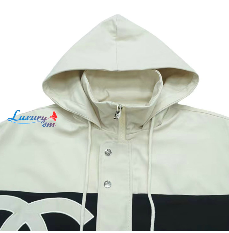 CHANEL-09163 샤넬 화이트/블랙 아플리케 장식 바람막이 후드 재킷 남여공용