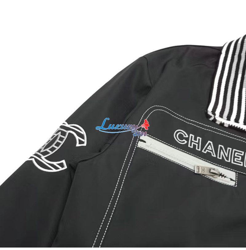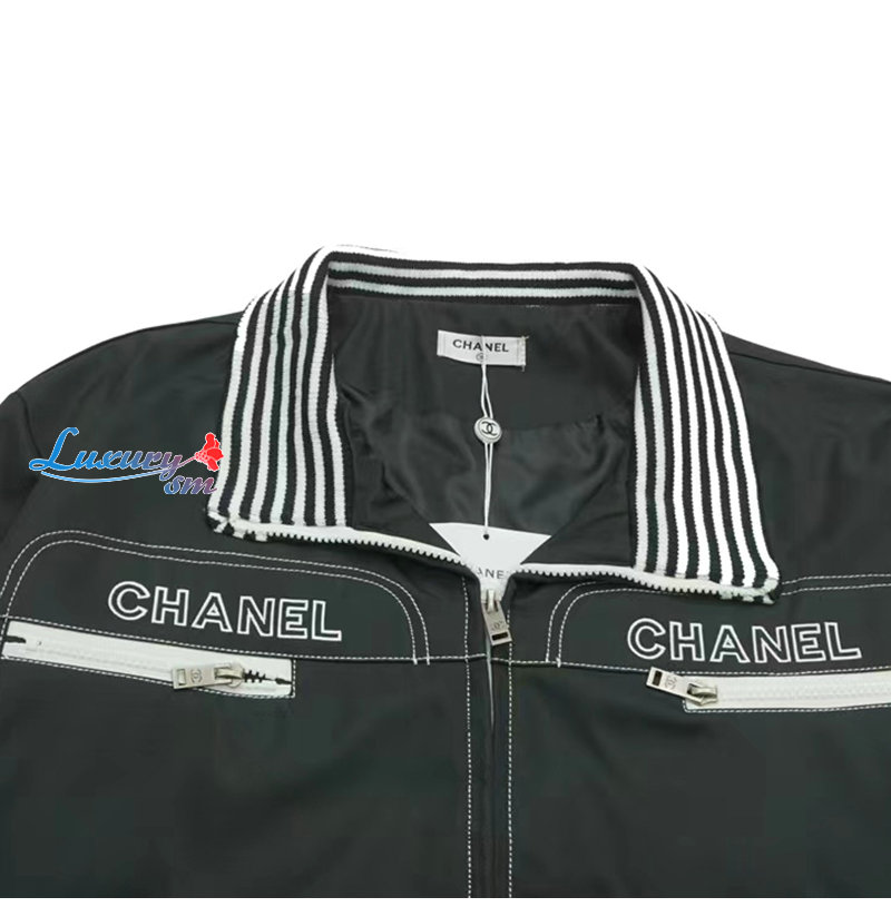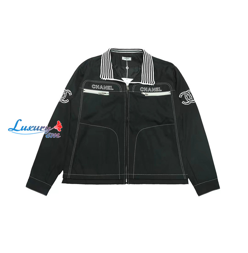 CHANEL-09164 샤넬 블랙 아플리케 장식 바람막이 재킷 남여공용