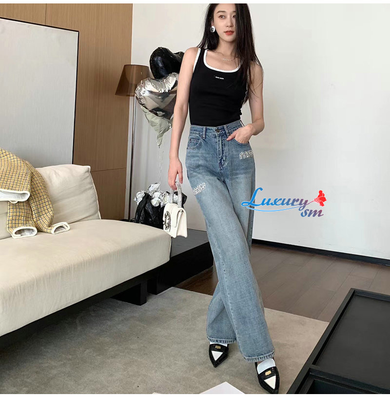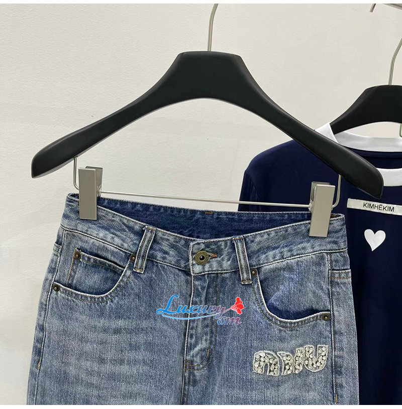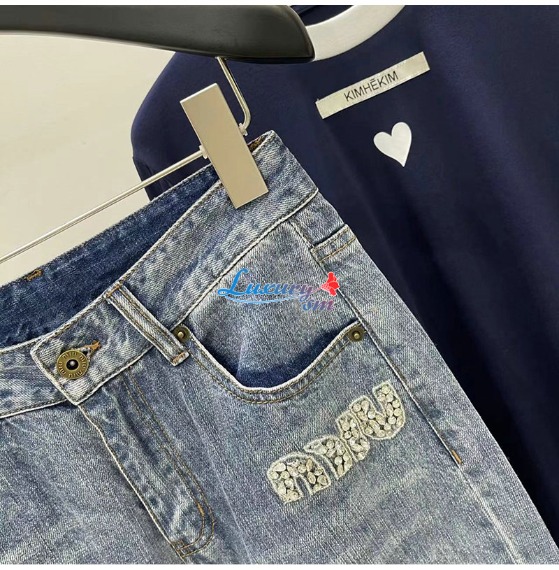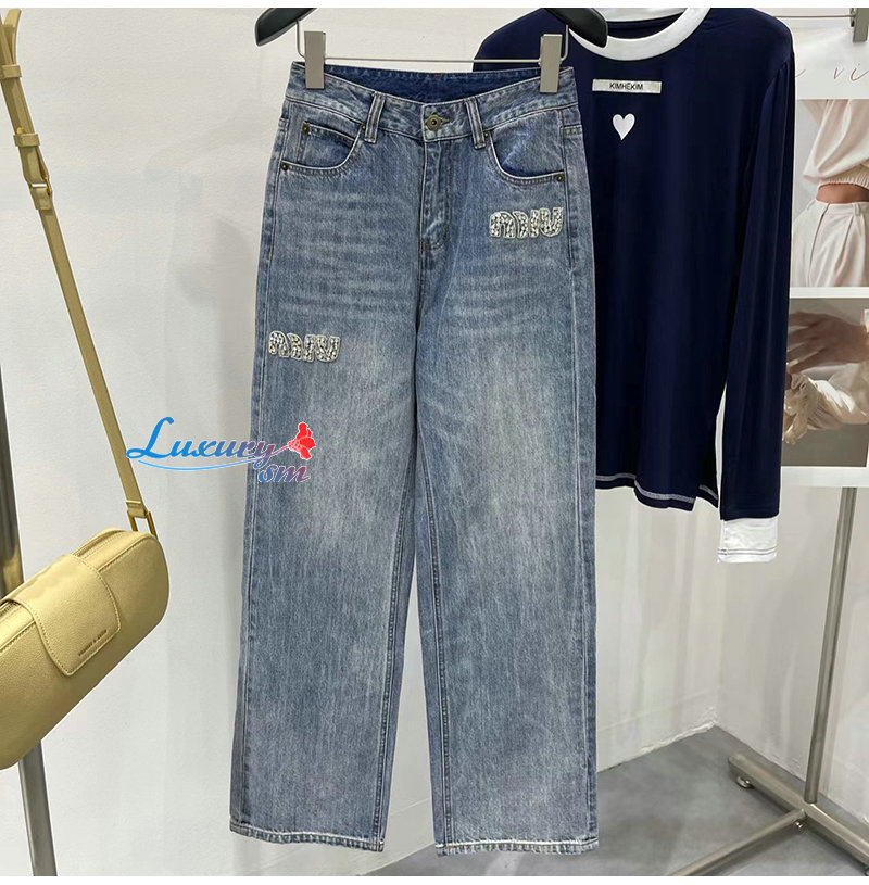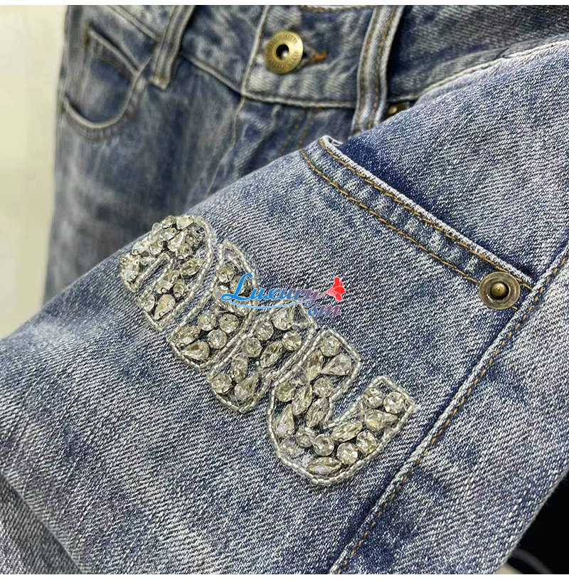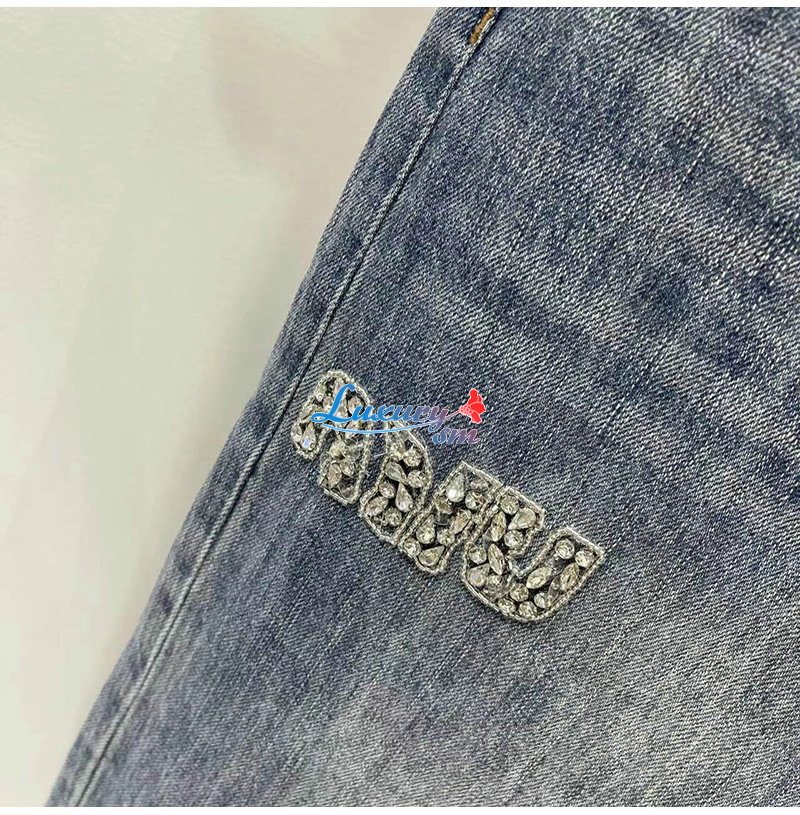 MIUMIU-09174 미우미우 블루 크티스탈 장식 청바지 여성용