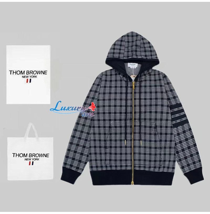 THOM BROWNE-09208 톰 브라운 그레이 체크 무늬 후드 재킷 남여공용