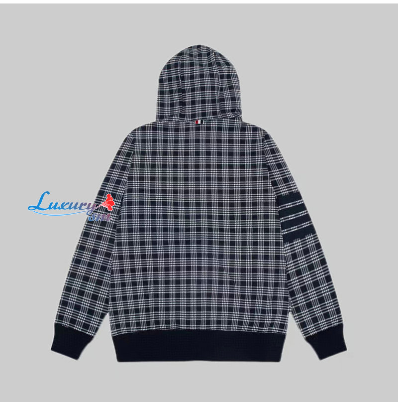 THOM BROWNE-09207 톰 브라운 블랙 체크 무늬 후드 재킷 남여공용