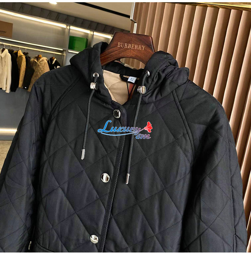 다이아몬드 퀼팅 디자인의 후드 재킷. 버버리 체크