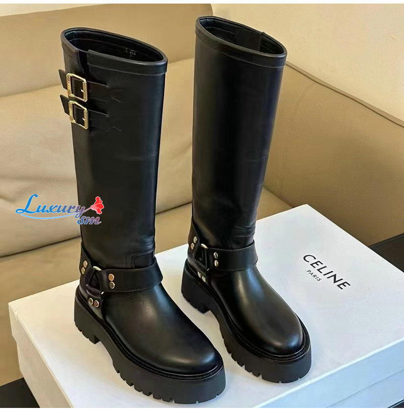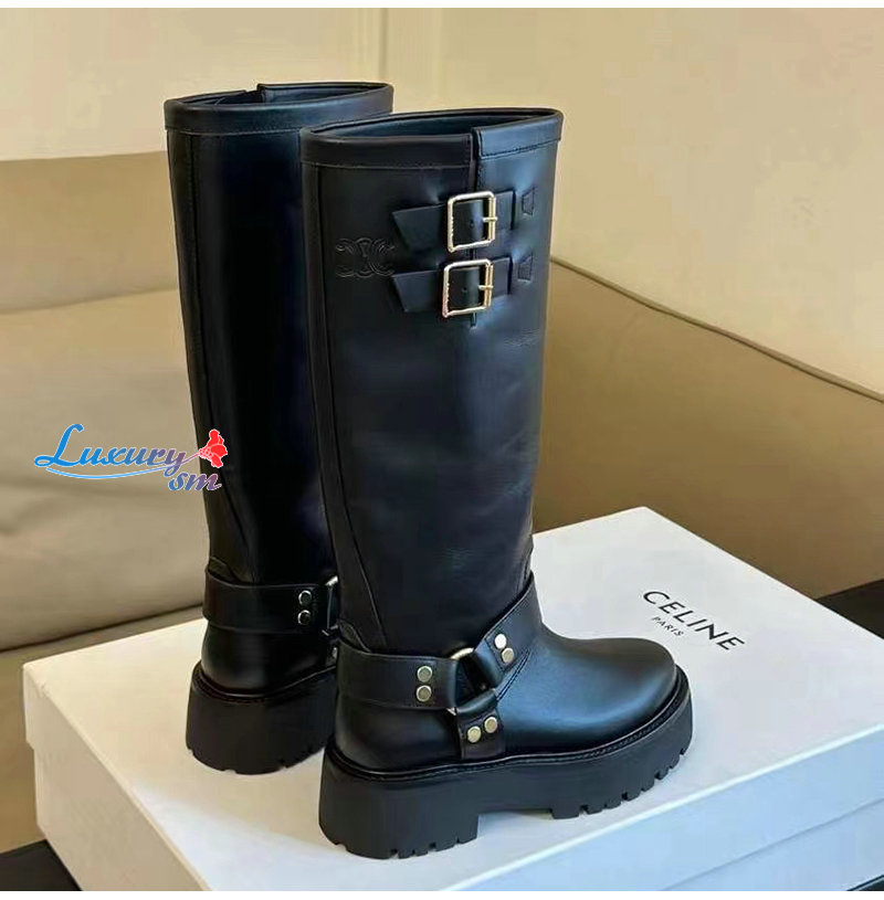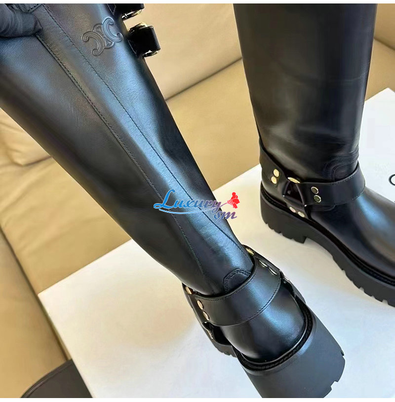 CELINE-354913 셀린느 블랙 바이커 하이 부츠 여성용