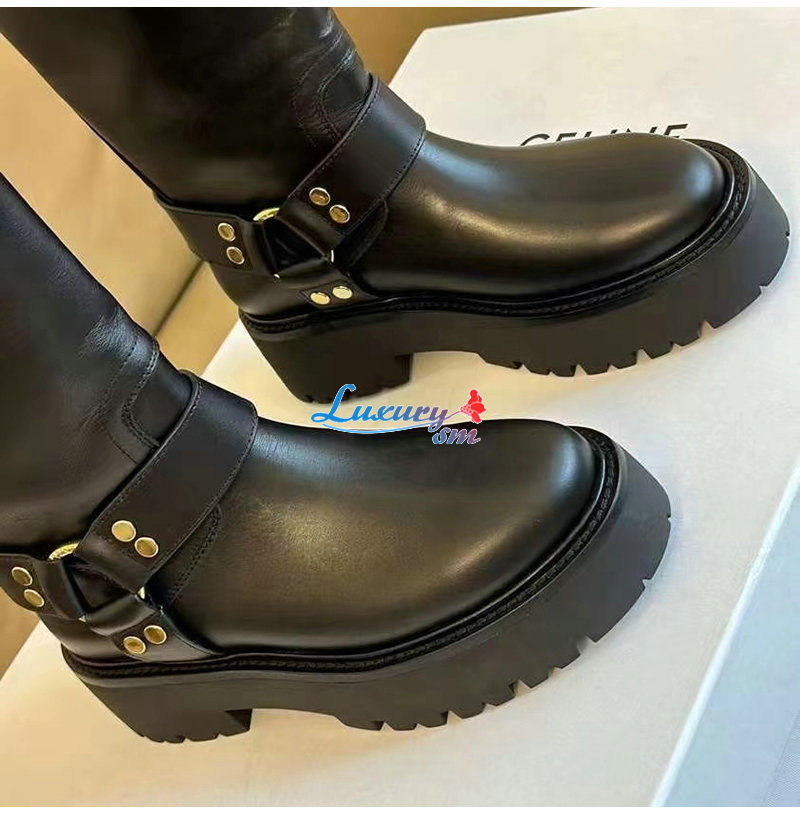 CELINE-354573 셀린느 블랙 하네스 벌키 미드 바이커 부츠 여성용