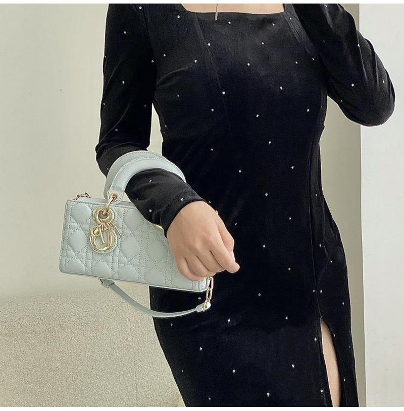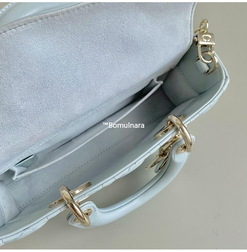 [스페셜오더]DIOR-M0613 디올 플라시드 블루 까나쥬 스티칭 골드 LADY D-JOY 스몰 핸드백 22cm