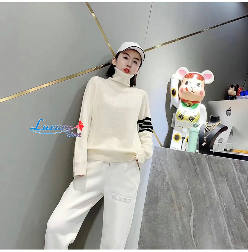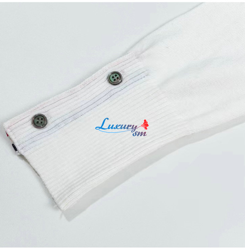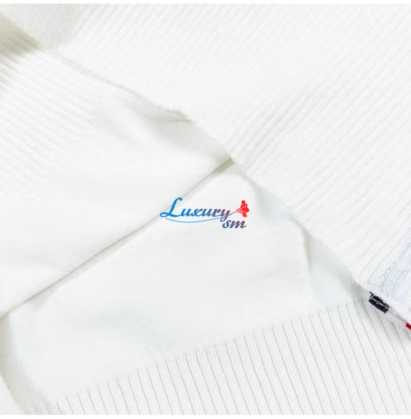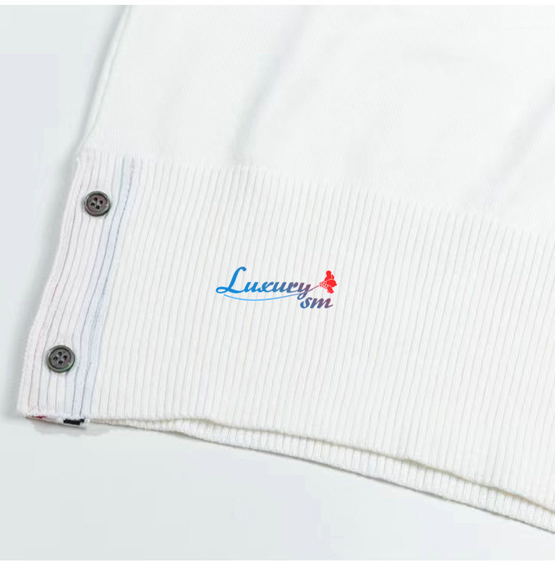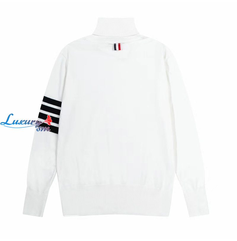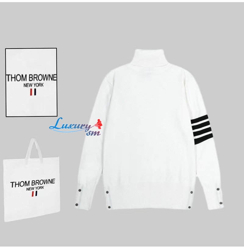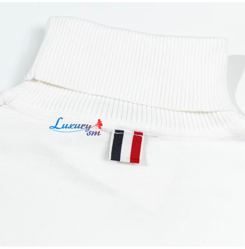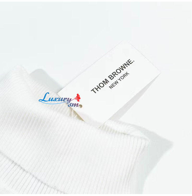 THOM BROWNE-10109 톰 브라운 화이트 스트라이프 장식 목폴라 티셔츠 남여공용