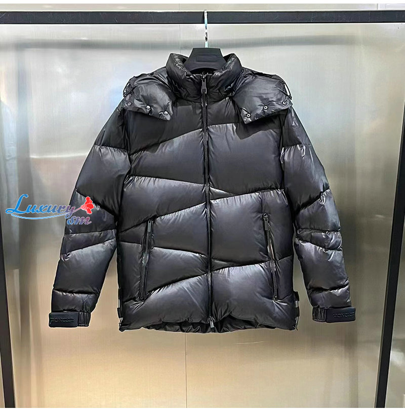 다운재킷은 날렵한 기하학적 패턴의 퀼팅이 돋