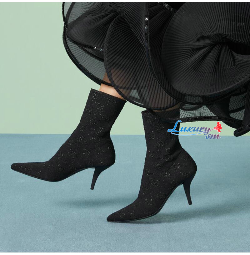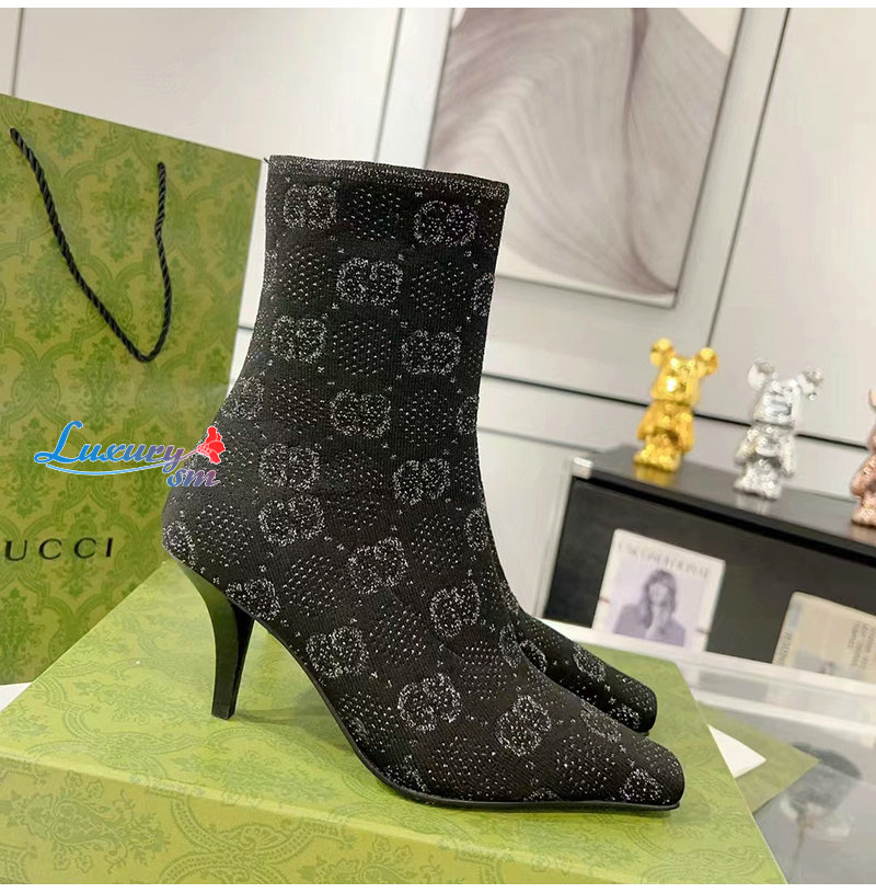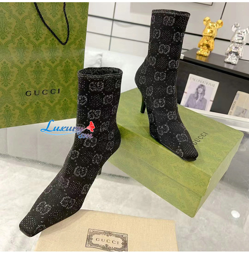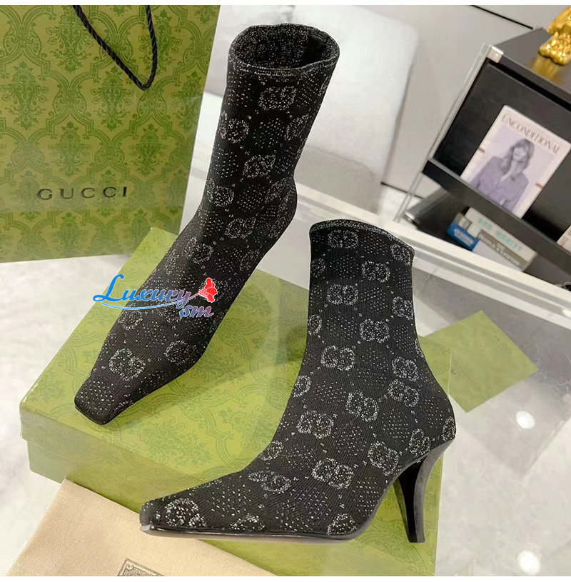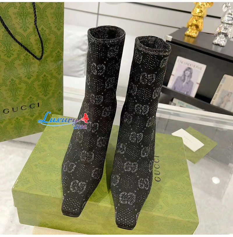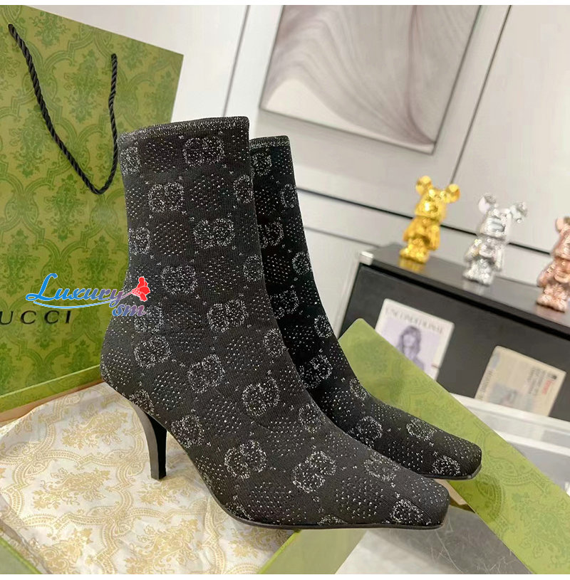 GUCCI-718378 8720 구찌 블랙 GG 니트 앵클 부츠