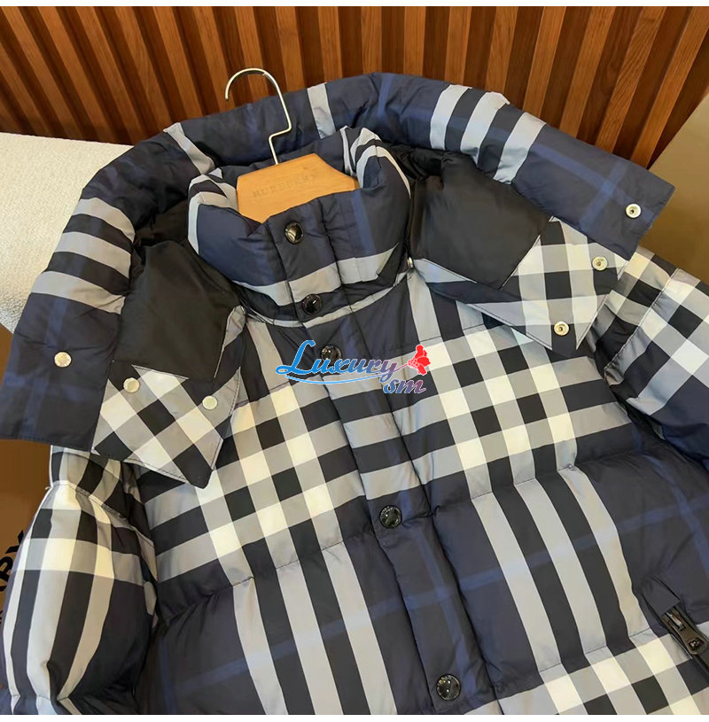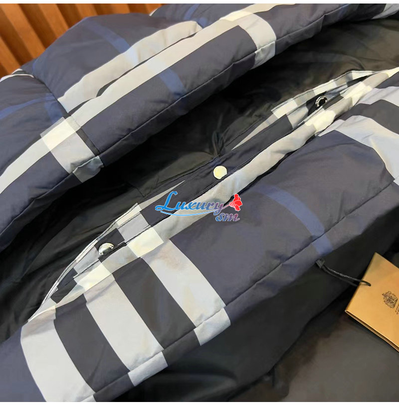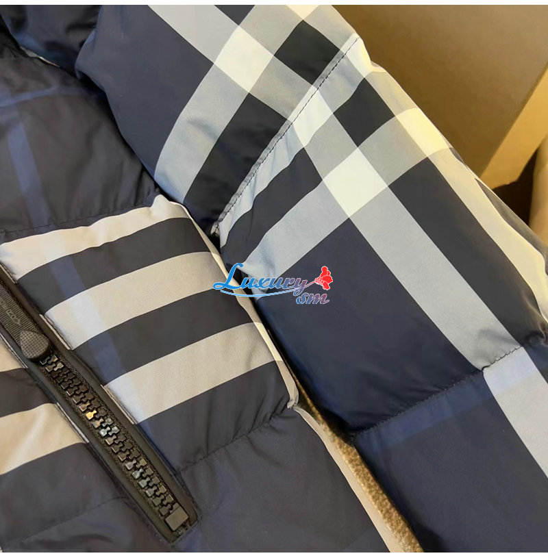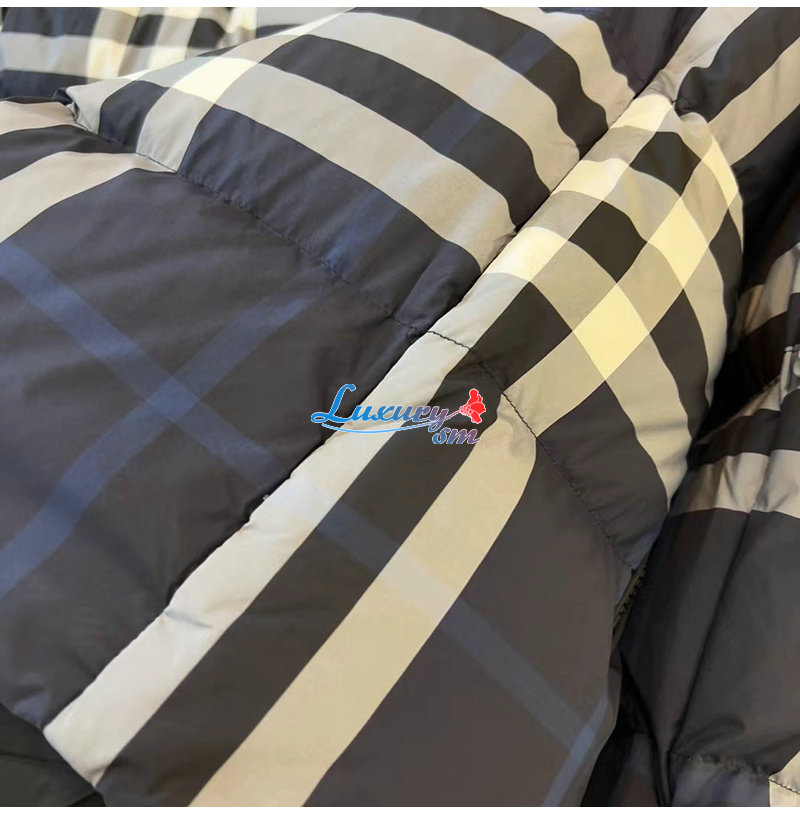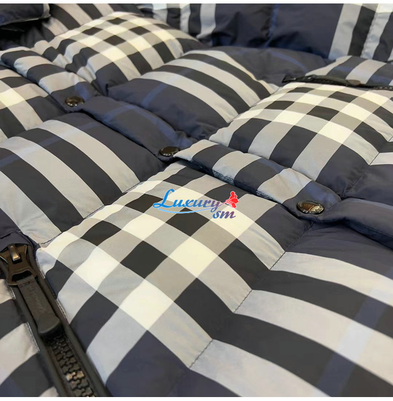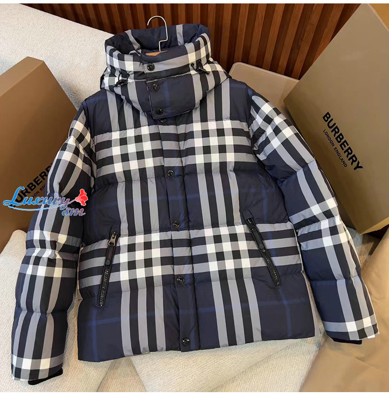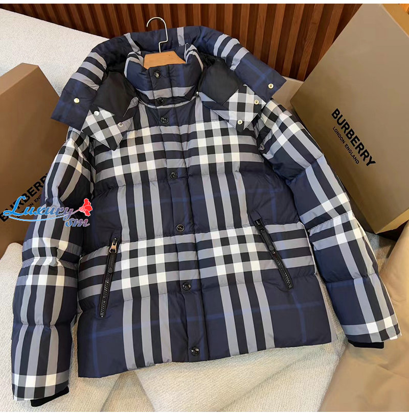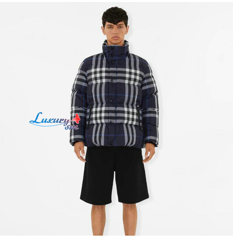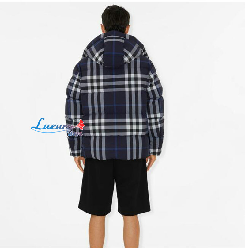 BURBERRY-80592121 버버리 네이비 체크 후드 퍼퍼 재킷 남성용