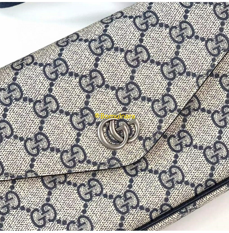 베이지&블루 GG 수프림 캔버스 / 블루 가죽 트리밍