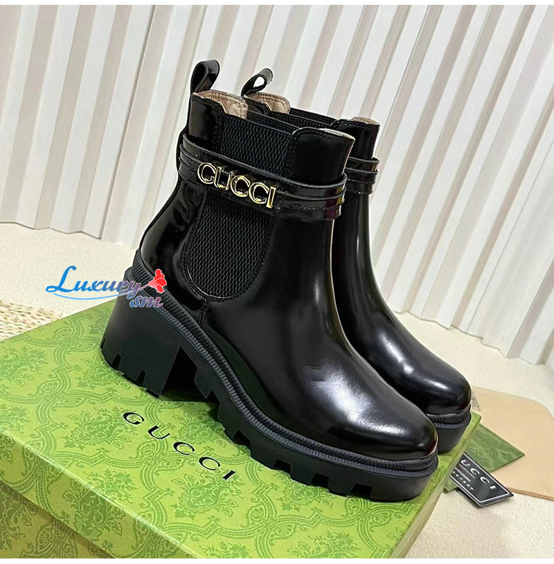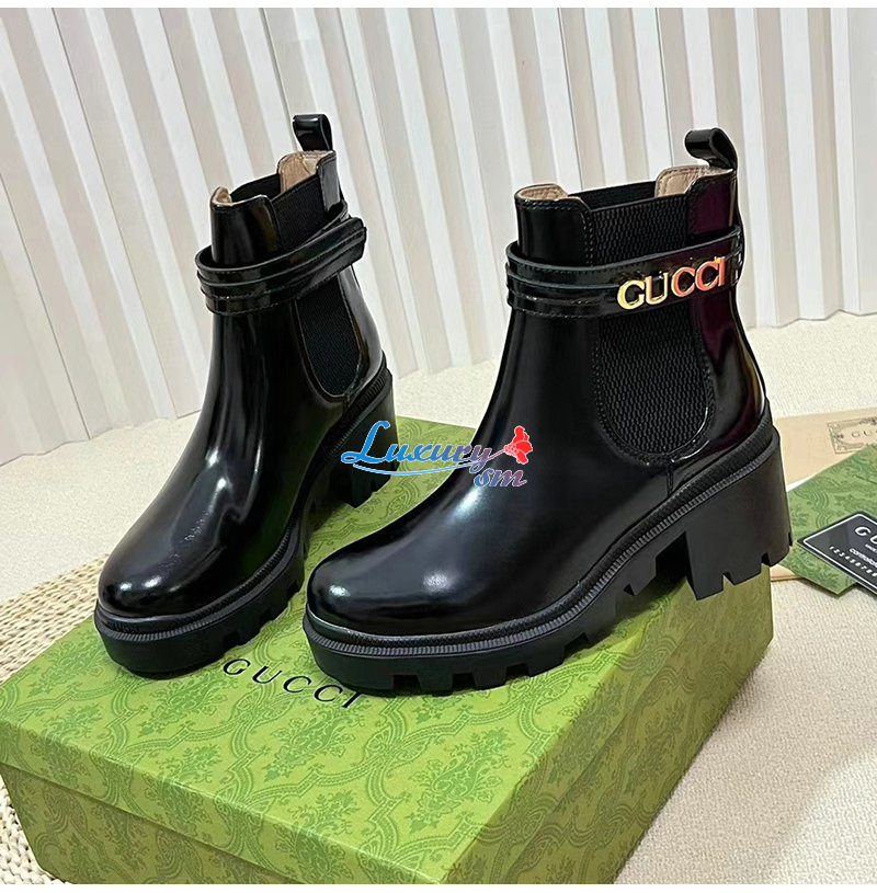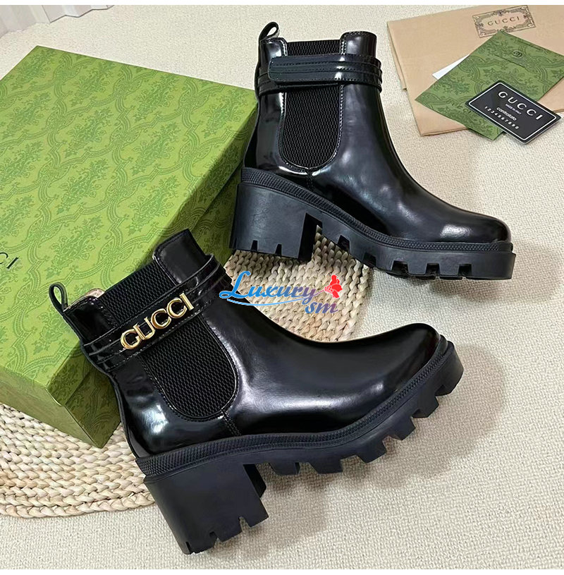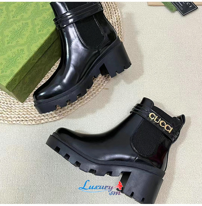 GUCCI-734909 1000 구찌 블랙 로고 미드힐 부츠 여성용