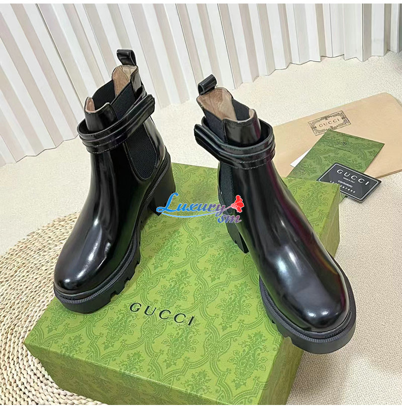 GUCCI-734909 1000 구찌 블랙 로고 미드힐 부츠
