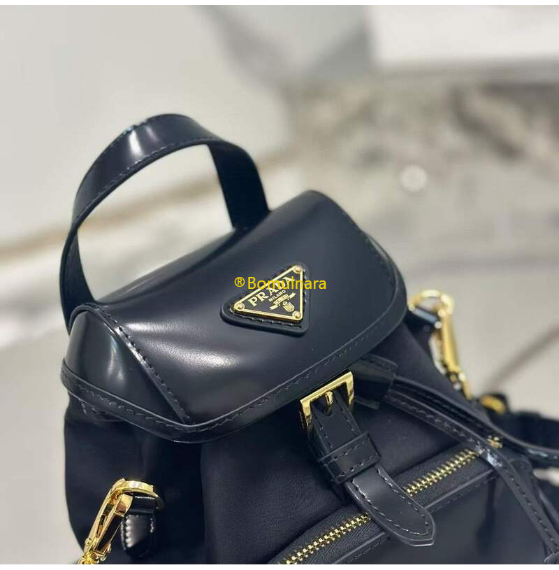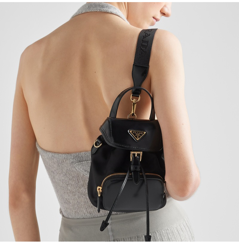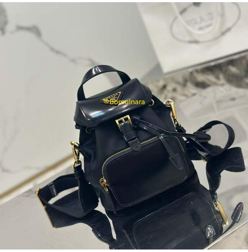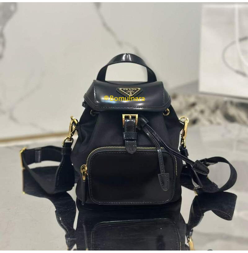 [스페셜오더]PRADA-1BZ075 프라다 블랙 리나일론/브러쉬드 가죽 스몰 백팩 15cm